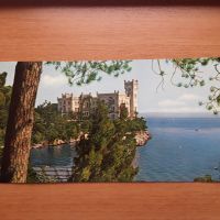 Descrizione:cartolina formato fuori standard cm 21,5 x 10,5. panorama con castello di Miramare. non scritta non viaggiata