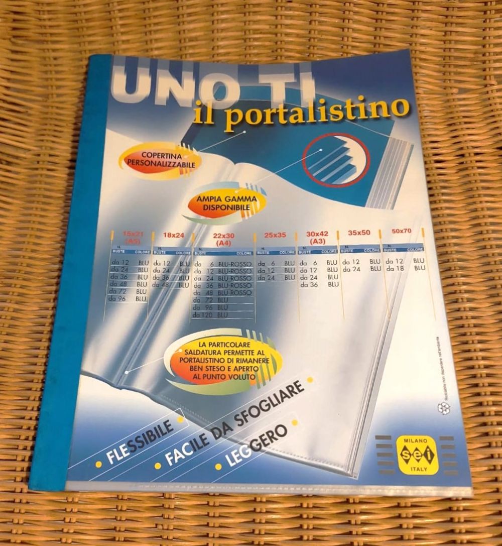 Raccoglitore con buste di plastica fisse per fogli A4 (ha meno buste degli altri porta-listini che ho pubblicato).