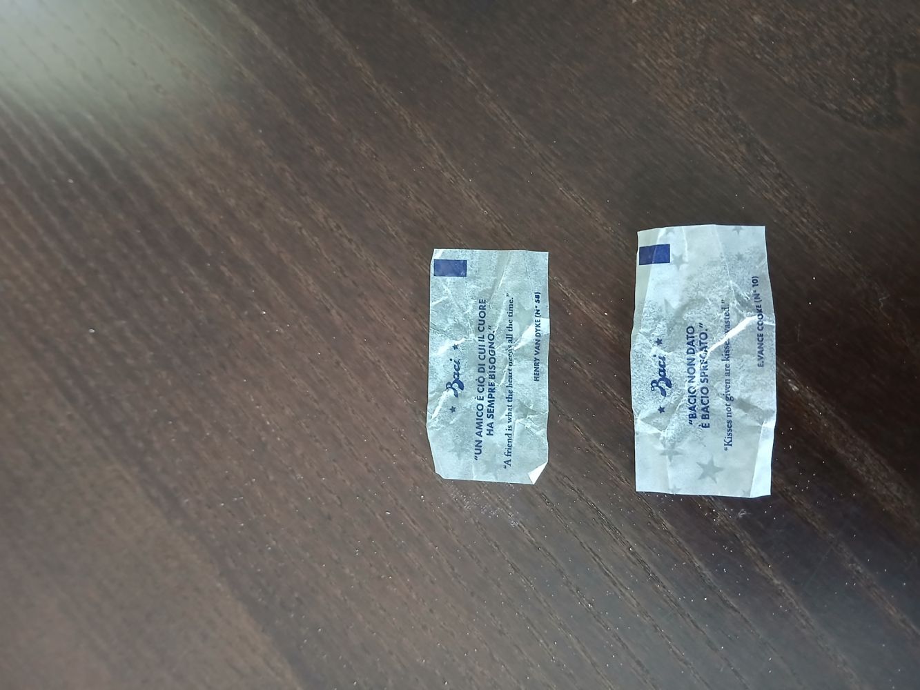 2 cartigli baci Perugina per Lucia. Li metto con il francobollo.