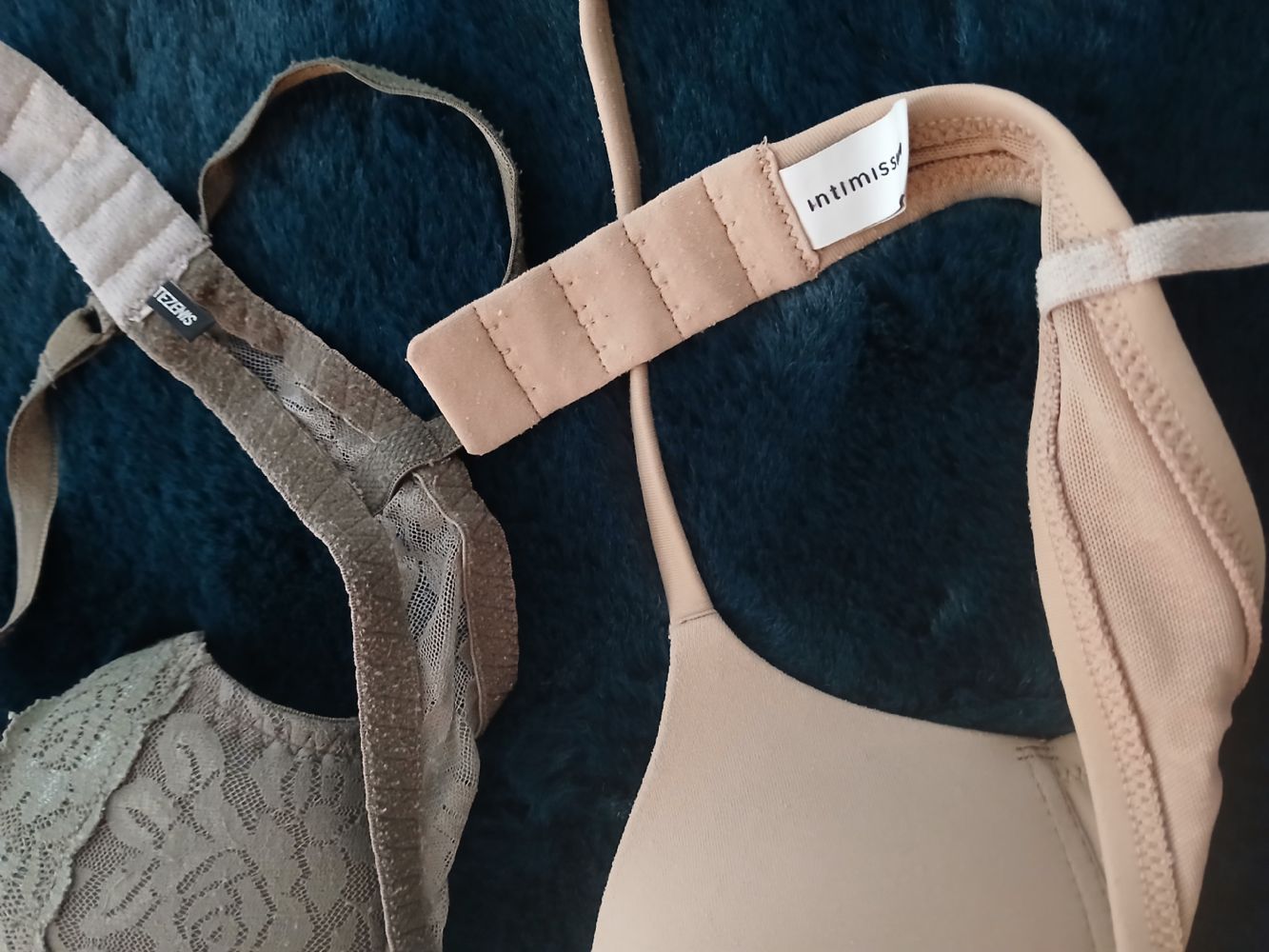 Descrizione:1 reggiseno Intimissimi e 1 Tezenis. Dovrebbero essere TG. 1 o 2. Usati tanto ma ancora utilizzabili. Non mi entrano più da quando sono ingrassata. Quello di Intimissimi è color carne e quello di Tezenis verde. Spedisco in collettiva 5340