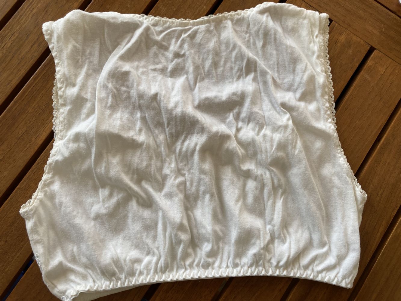 Descrizione:Jersey di cotone con inserti in san gallo ingiallito dal tempo, ma con elastico perfetto. Adatto ad una seconda/42. Misura ascelle 36 cm.