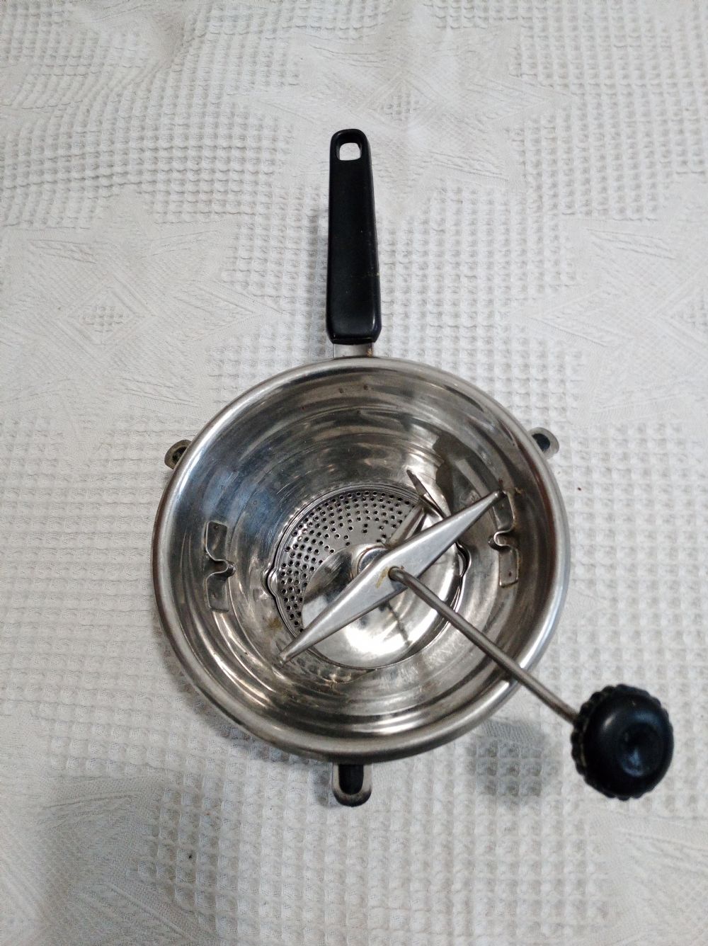 Passa verdure in acciaio inox , con manico in bachelite e pomello in plastica