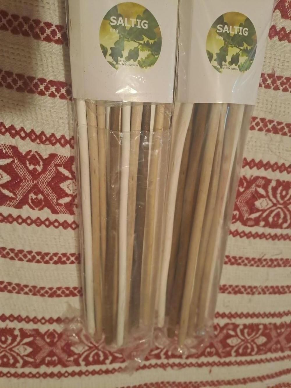 Descrizione:Ikea in legno lunghi 35 cm in ogni confezione ce ne sono 18 rimasta solo una confezione