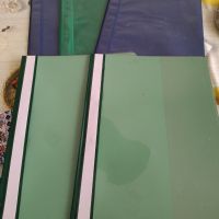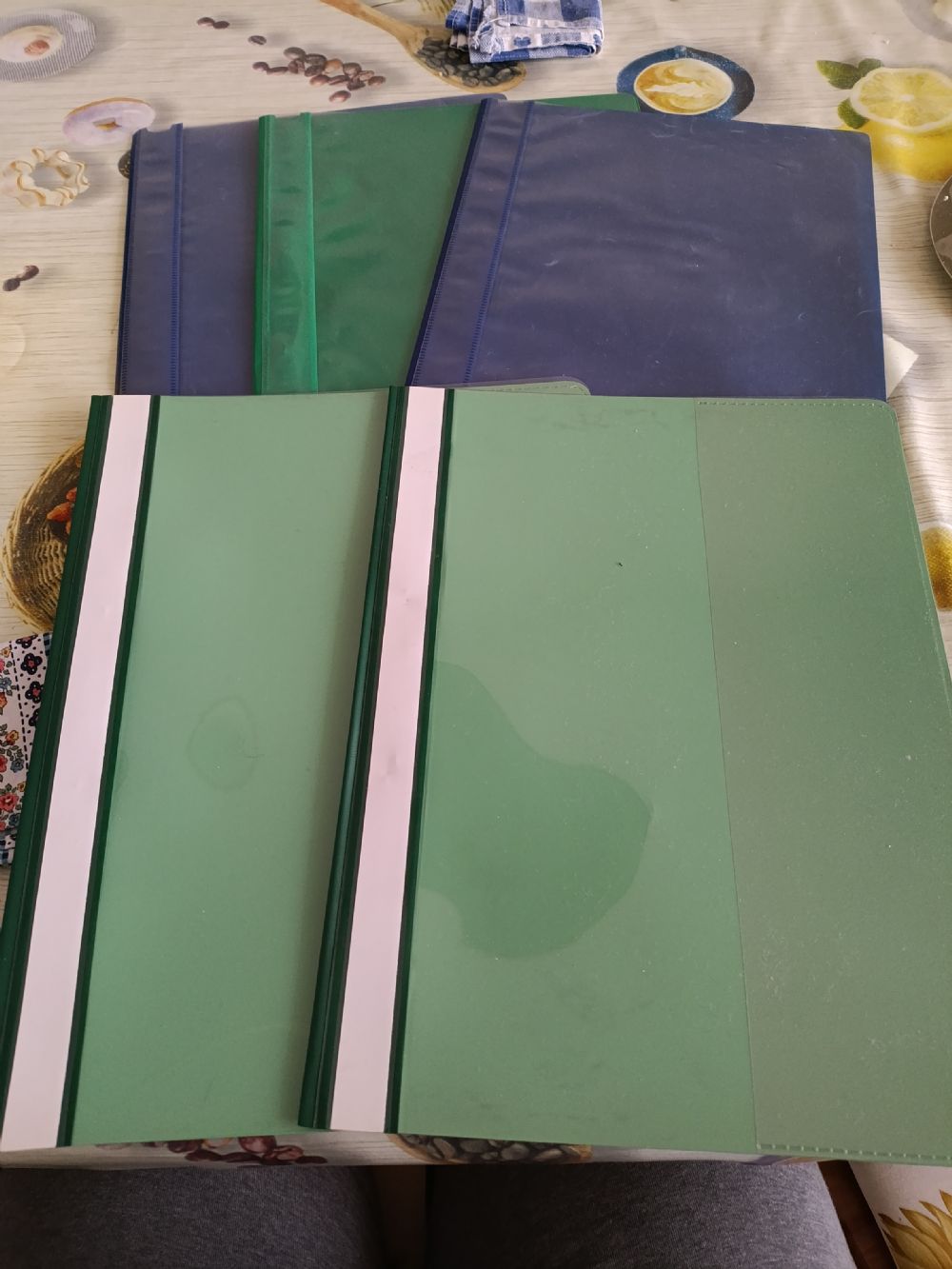 Descrizione:5 cartelline in plastica per progetti o altro, copertina trasparente. I fogli vanno bucati e inseriti nel ferretto