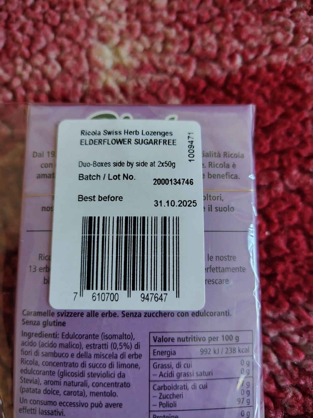 Caramelle Ricola ai fiori di sambuco. Scadenza 31.10.2025