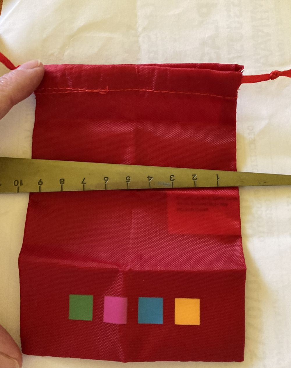 Piccolo sacchetto in tela rossa, nuovo.