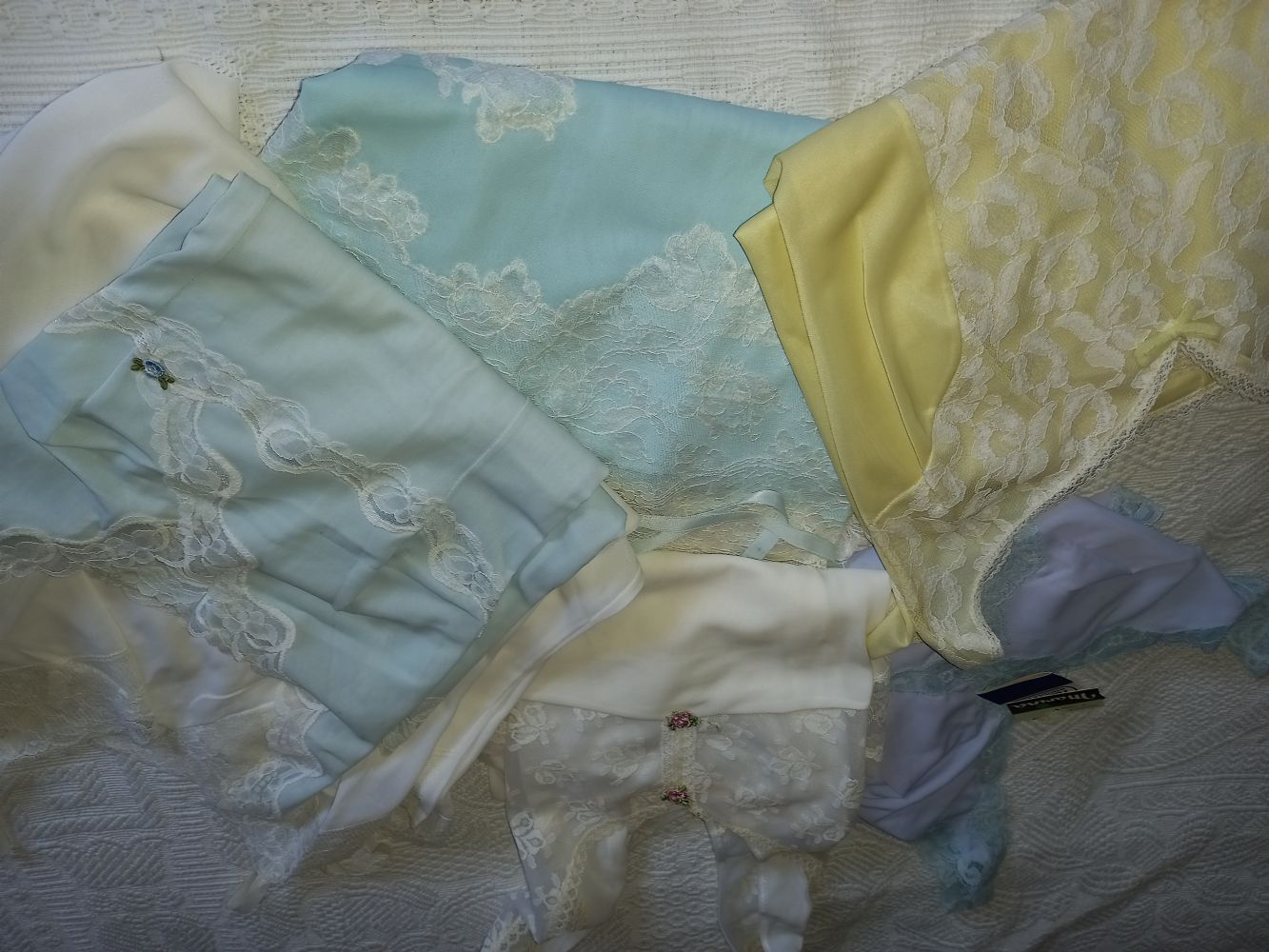 Descrizione:6 sottoveste,misure S M di cui una nuova con cartellino,tutte in materiale sintetico. Magari qualcuno le può usare come camicie da notte