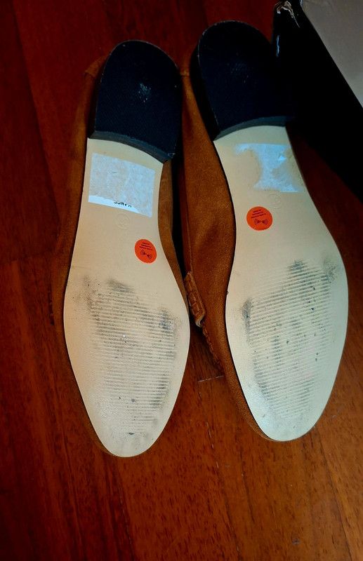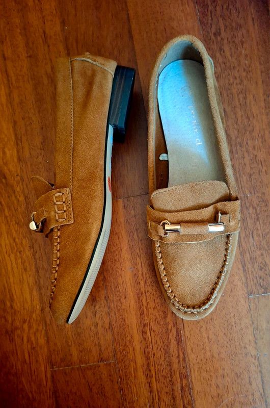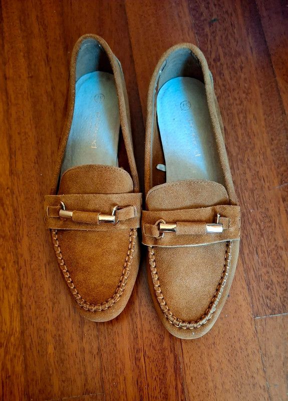Scarpe mocassini marroni, numero 37, di marca Promod, in simil camoscio, mai usati come si vede dalla suola, in ottime condizioni.