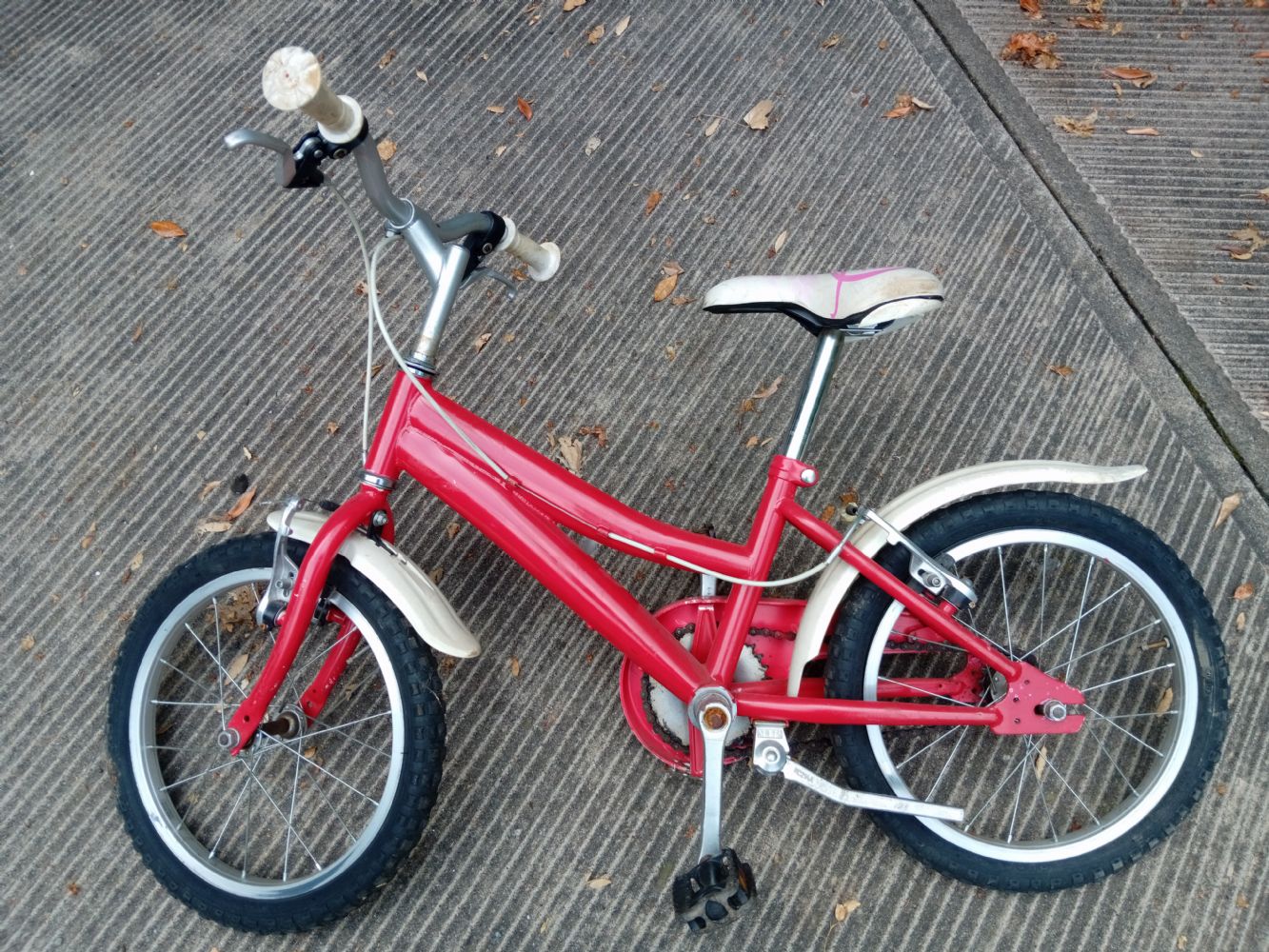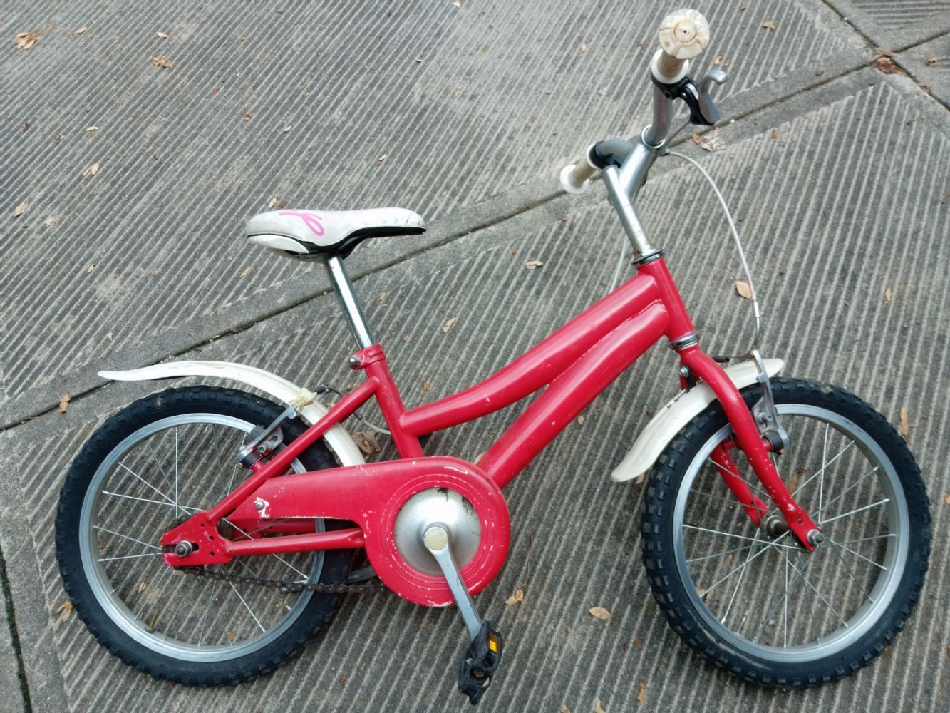 Descrizione:Biciclettina da bimbo con qualche punto di ruggine e gomme da gonfiare.