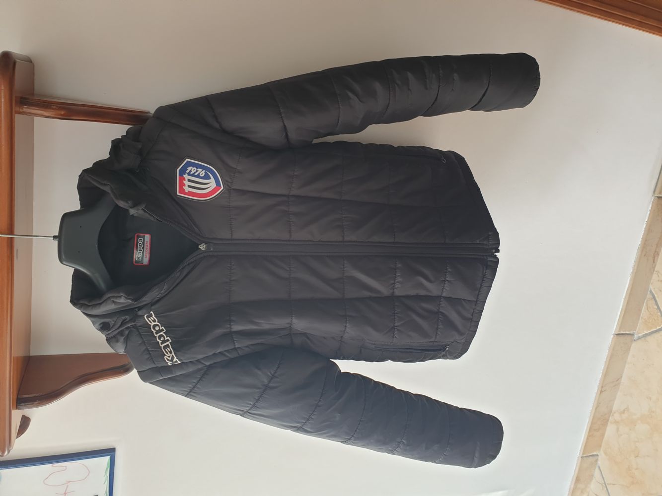 Descrizione:Piumino imbottito Kappa x ragazzo 12-14 anni. È praticamente perfetto, solo la lampo è rovinata nel punto in foto