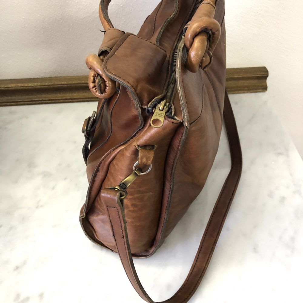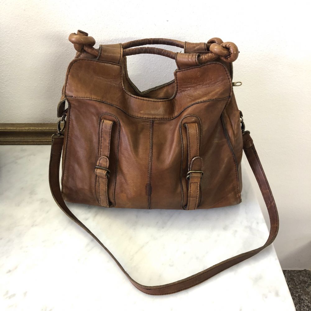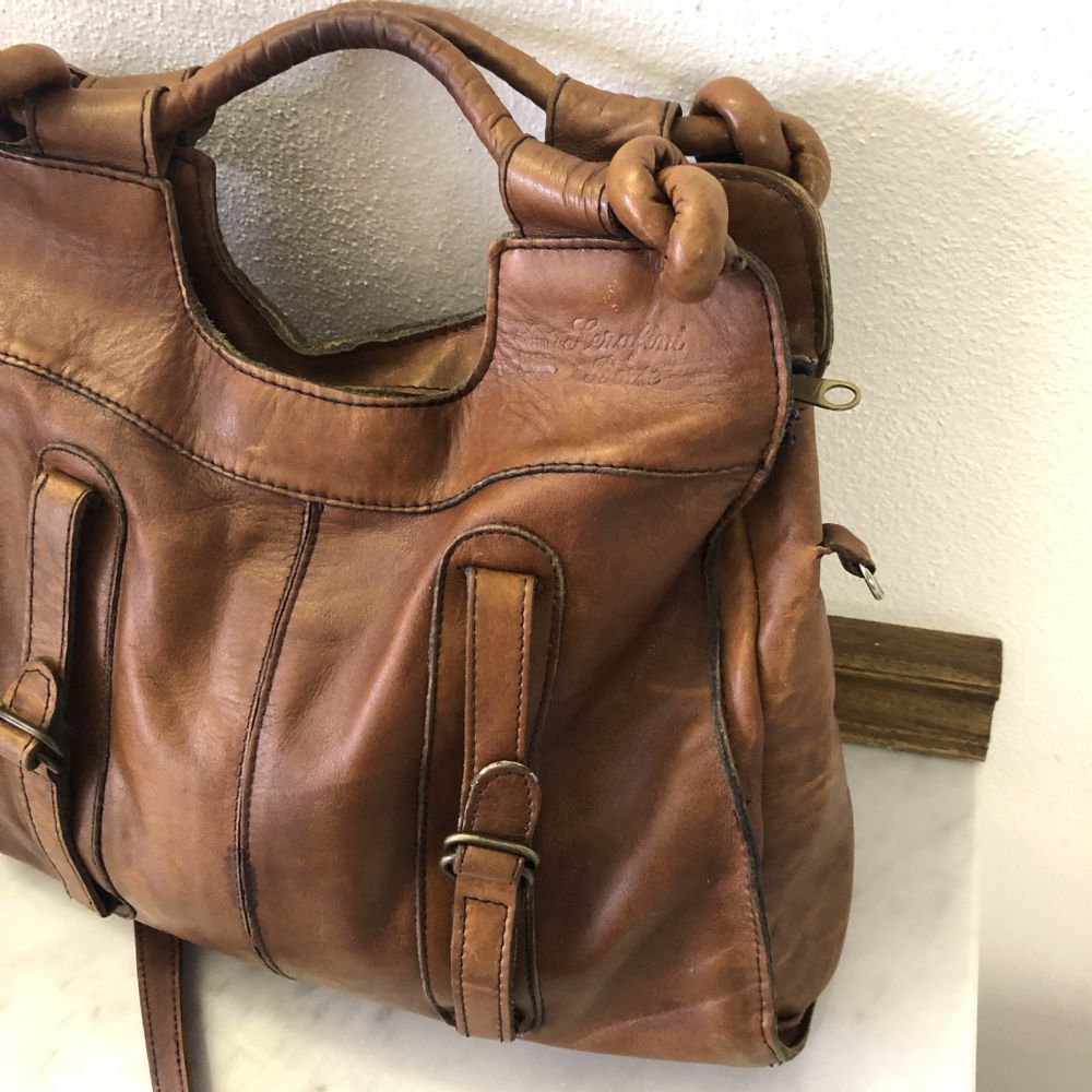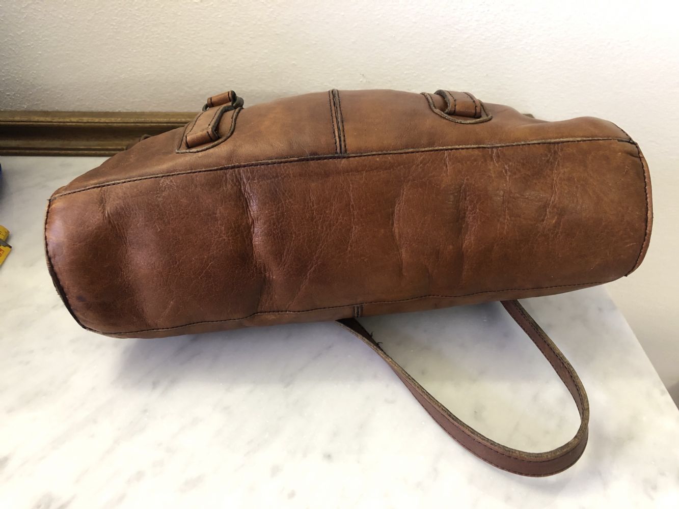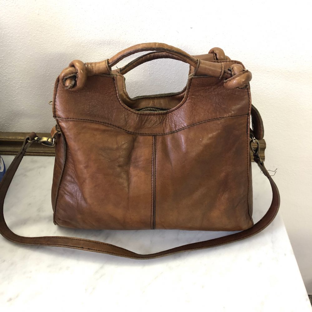 Materiale molto robusto, nessuna scucitura, manici corti e 2 cinghie davanti che servivano per tenere un giornale o una rivista.