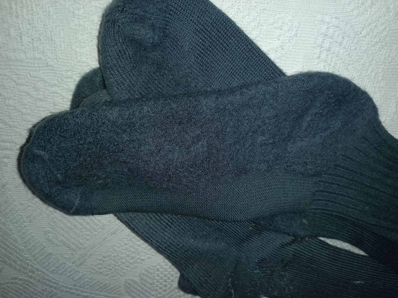 Calzini imbottiti da lavoro,un paio ha fatto dei peluche. Li usano in Svizxera per i militari ma mia zia ce li comprava perché i miei lavoravano in un''officina dove d''inverno faceva freddo. Lunghezza piede cm24 circa. Seconda foto al rovescio per vedere imbottitura piede