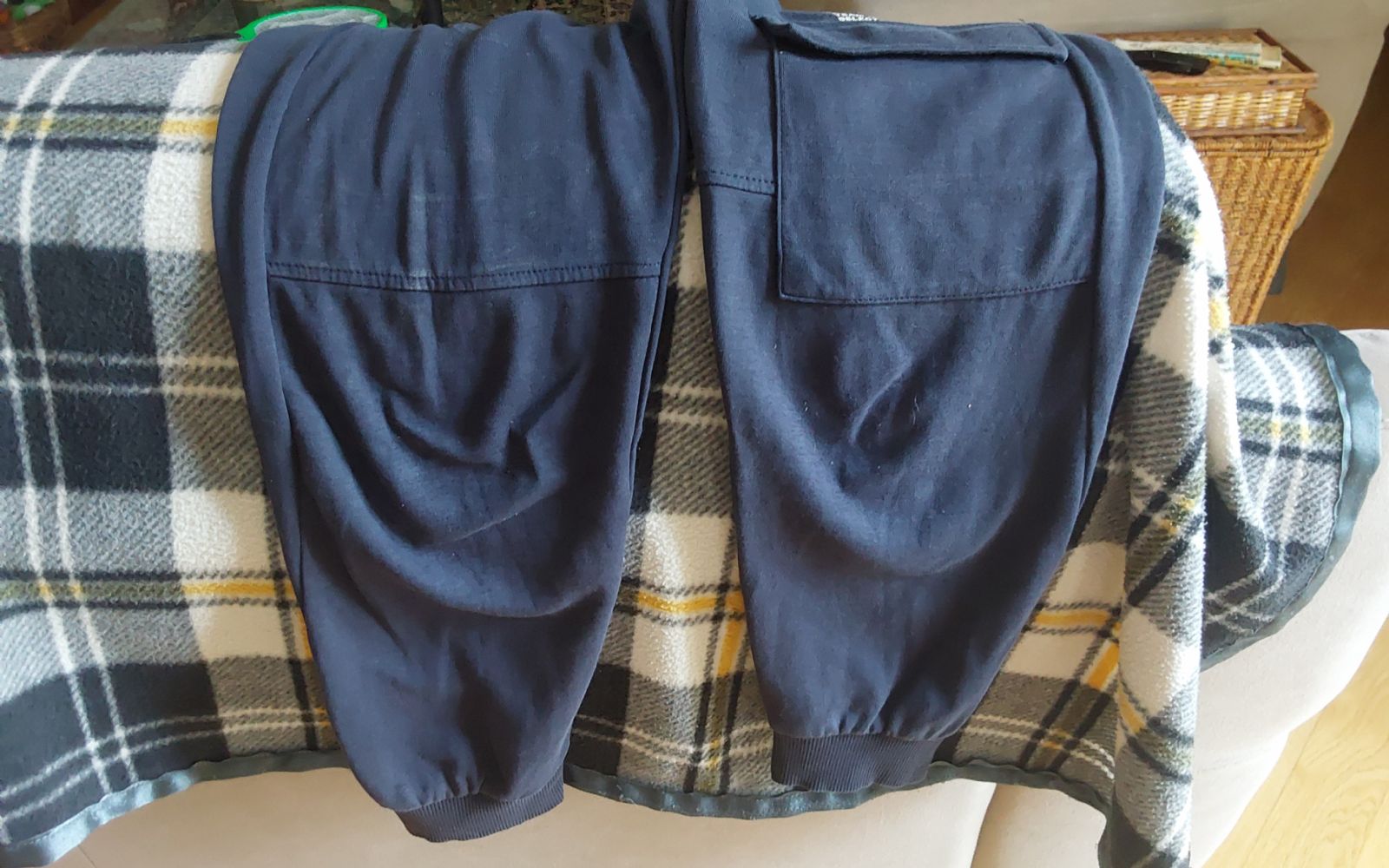 Calzoni tuta O.M. blu in cotone 9-10 anni, usati solo per l'ora di motoria a scuola.