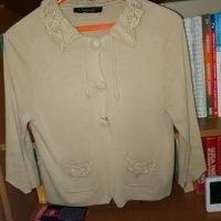 Descrizione:Cardigan originale Simona Barbieri, corto in cotone, maniche 3/4 taglio vivo ( a mio parere non molto curato,vedi ultima foto). Larghezza spalle cm 40 circa, lunghezza cardigan circa 50.