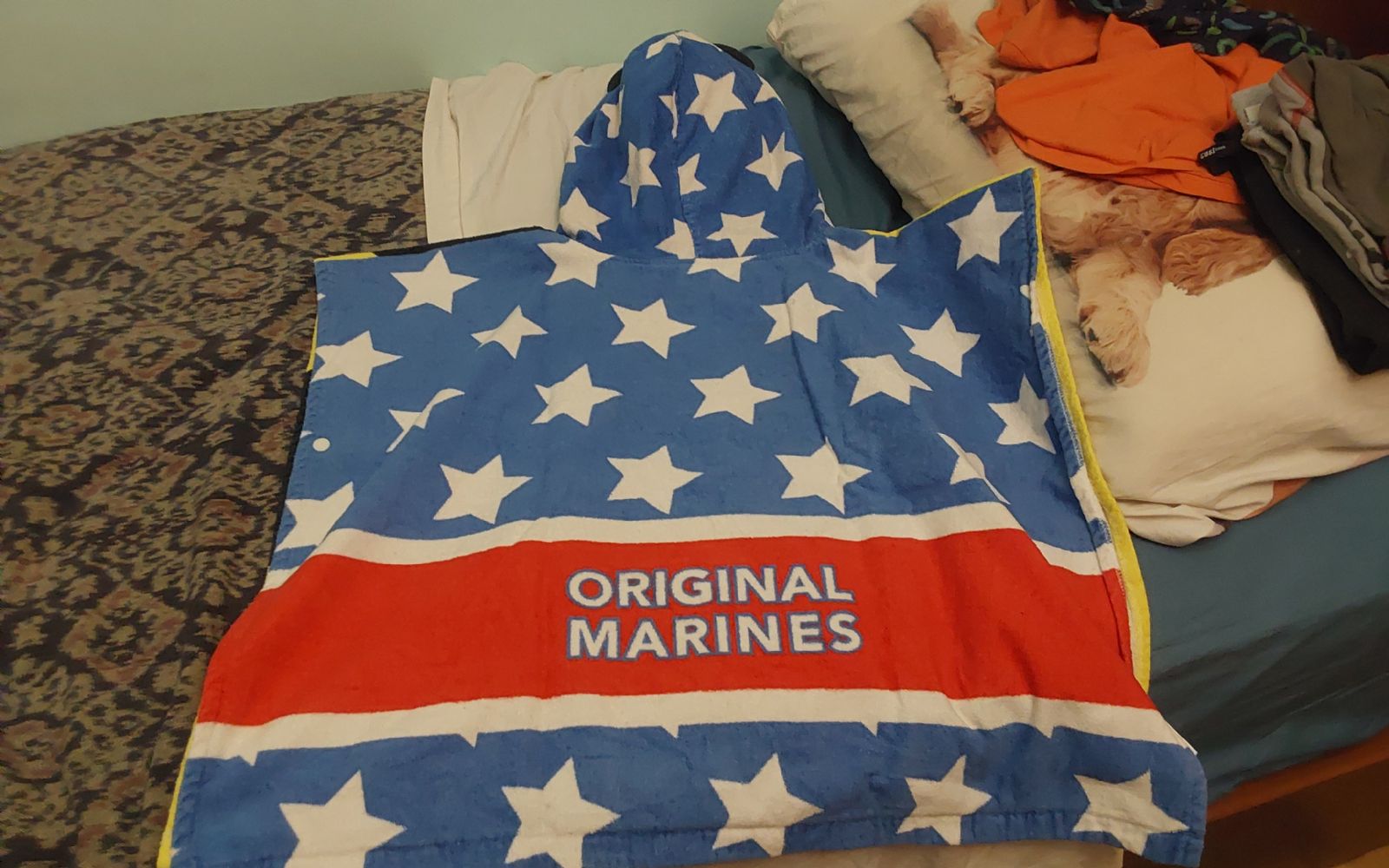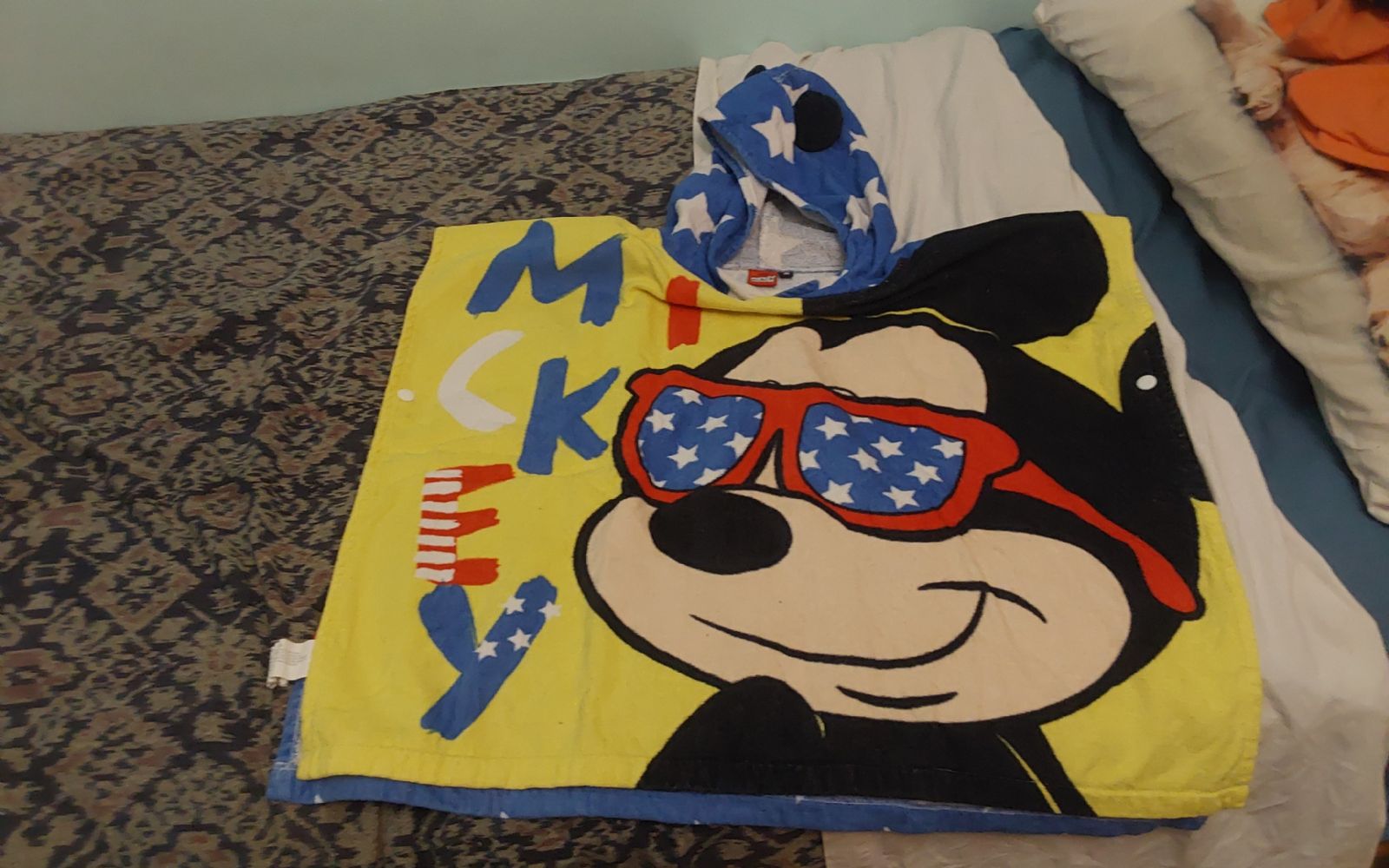 Descrizione:Poncho spugna usato molto poco perchè mio figlio ha sempre predferito l'accappatoio. La tagli indica M, per l'eta direi 8-9 max 10 anni. misure 65 llarghezza 60 lunghezza.