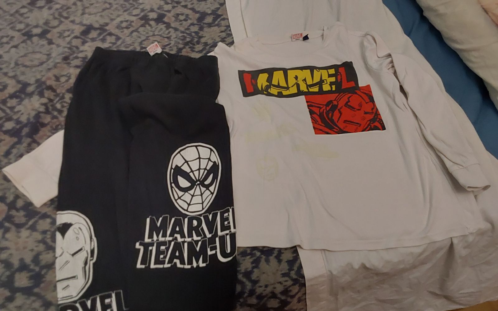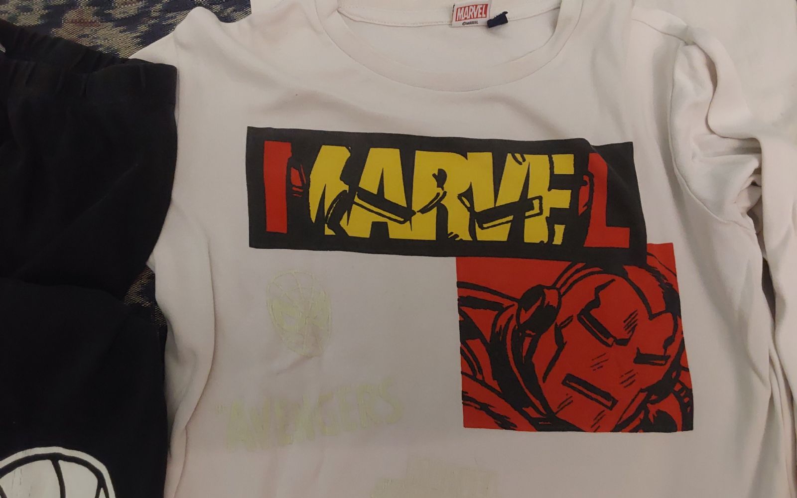 Pigiama cotone serie Marvel Original Marines, non presenta machie o difetti, i disegni sul pantalone presentano qualche crepa dovuta ai lavaggi.