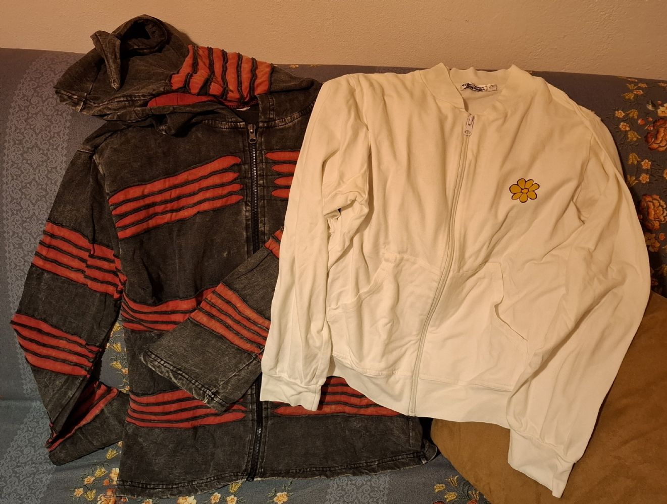 Descrizione:Quella nera e rossa veste M ed ha il cappuccio, effetto sbiadito è voluto.