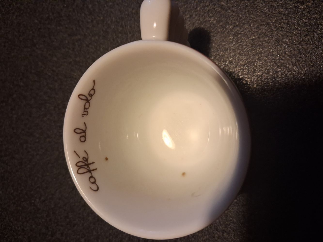 Descrizione:ho rotto una tazzina di questo servizio da caffè, che poi era costituito da due sole tazzine e rispettivi piattini, e mi farebbe piacere rimettere insieme la coppia.