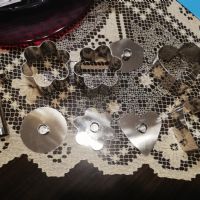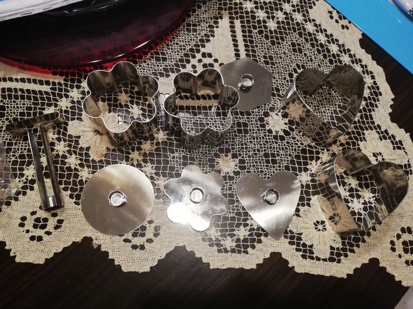 Descrizione:Set di anelli e forme per dessert, antipasti o da usare come coppapasta. Usati poco e niente. In acciaio inox. Sono tutti marca Kaiser, tranne l'anello rotondo a sinistra che è marca Eva collection. Altezza 5 cm. Diametro tra i 6,5 e i 9 cm.