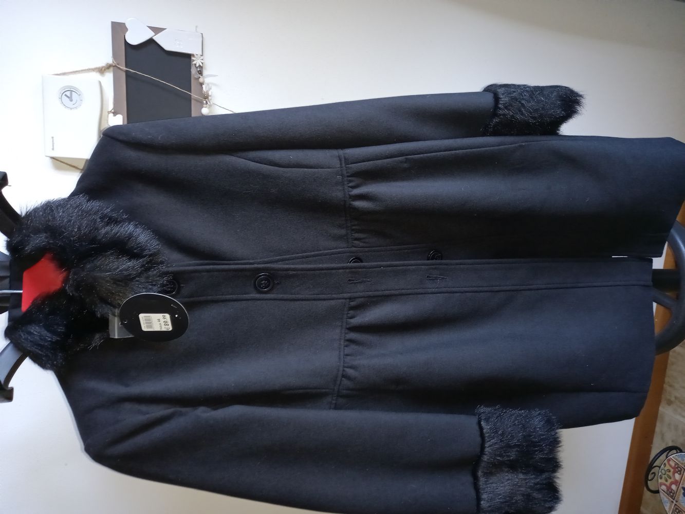 Cappotto nero con pelliccia sintetica,TG 44 in poliestere,viscosa elastan. Nuovo con cartellino. Non seguo necessariamente coda. Grazie. Assegno preferibilmente a chi può ritirare a mano, con spedizione diretta o velocemente da Lucia. Inserisco il capo poco e ben piegato in collettiva, ma non deve rimanere a lungo in giro perché rischia di finire stropicciato malamente.. Ho ricevuto in tempi diversi 2 cappottini messi in borse di plastica e non li ho potuti indossare perché nemmeno in lavanderia mi potevano garantire di tornare a metterli in forma.