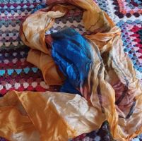Pura seta morbida e leggerissima. Usata pochissimo o niente. Lunga circa 170 larga circa 55