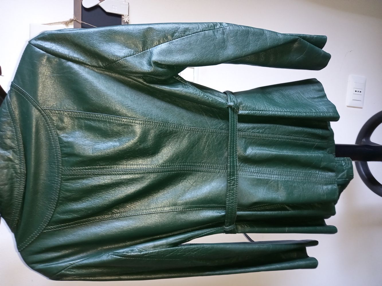 In vera pelle taglia 42. Ho messo a pochi crediti perché ha bisogno di essere portata in lavanderia.Laeghezza spalle cm 42, torace 64 circa, lunghezza cm 67 circa,lunghezza maniche 59cm