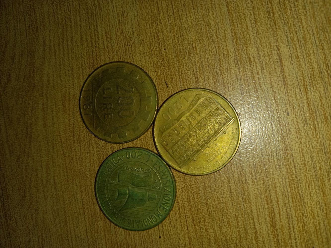 Descrizione:3 monete da 200 lire. Una si è ossidata