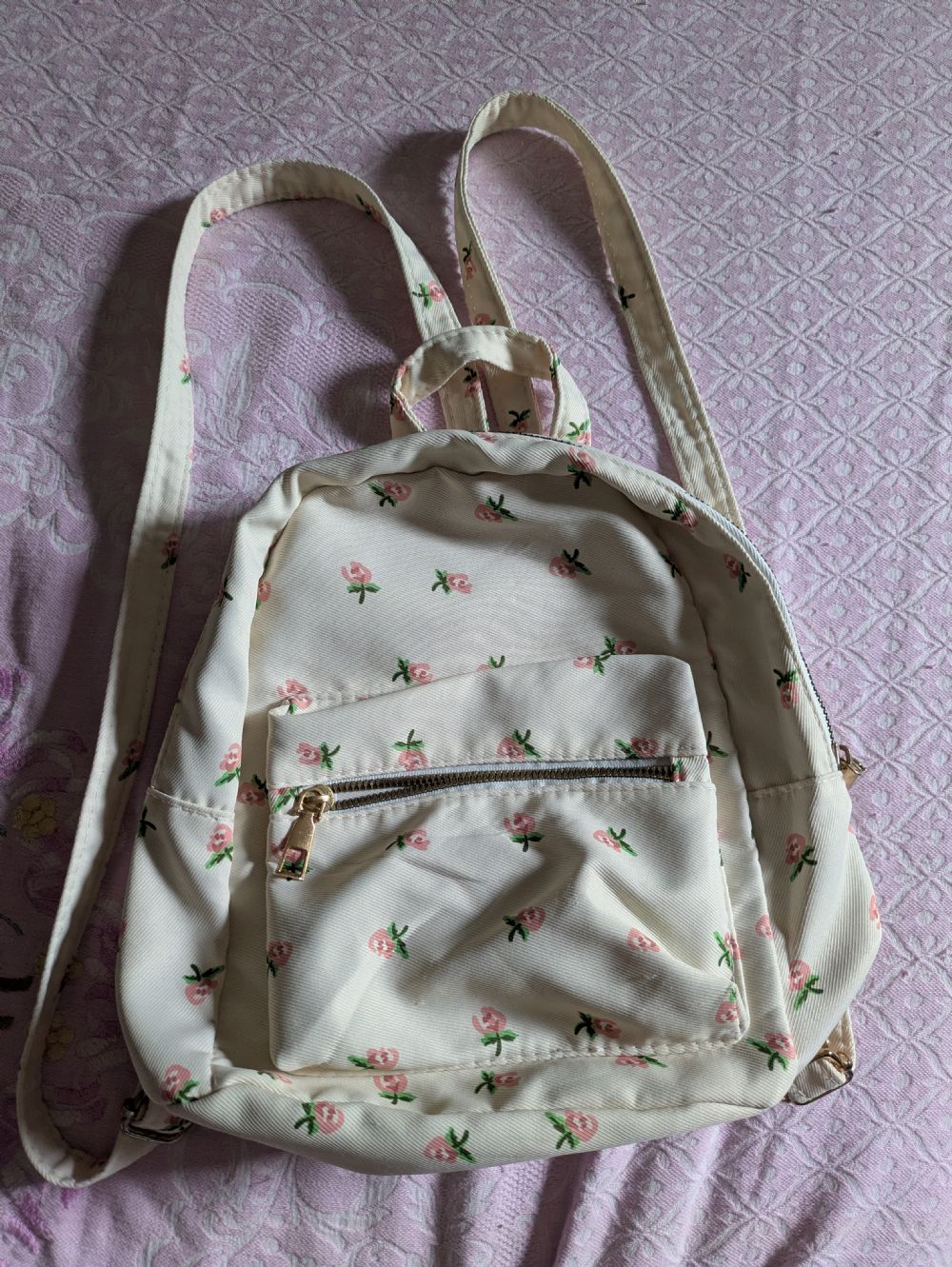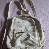 Zainetto cotone, spalline sottile regolabili , colore beige con stampe fiori. Misure 24*27 cm