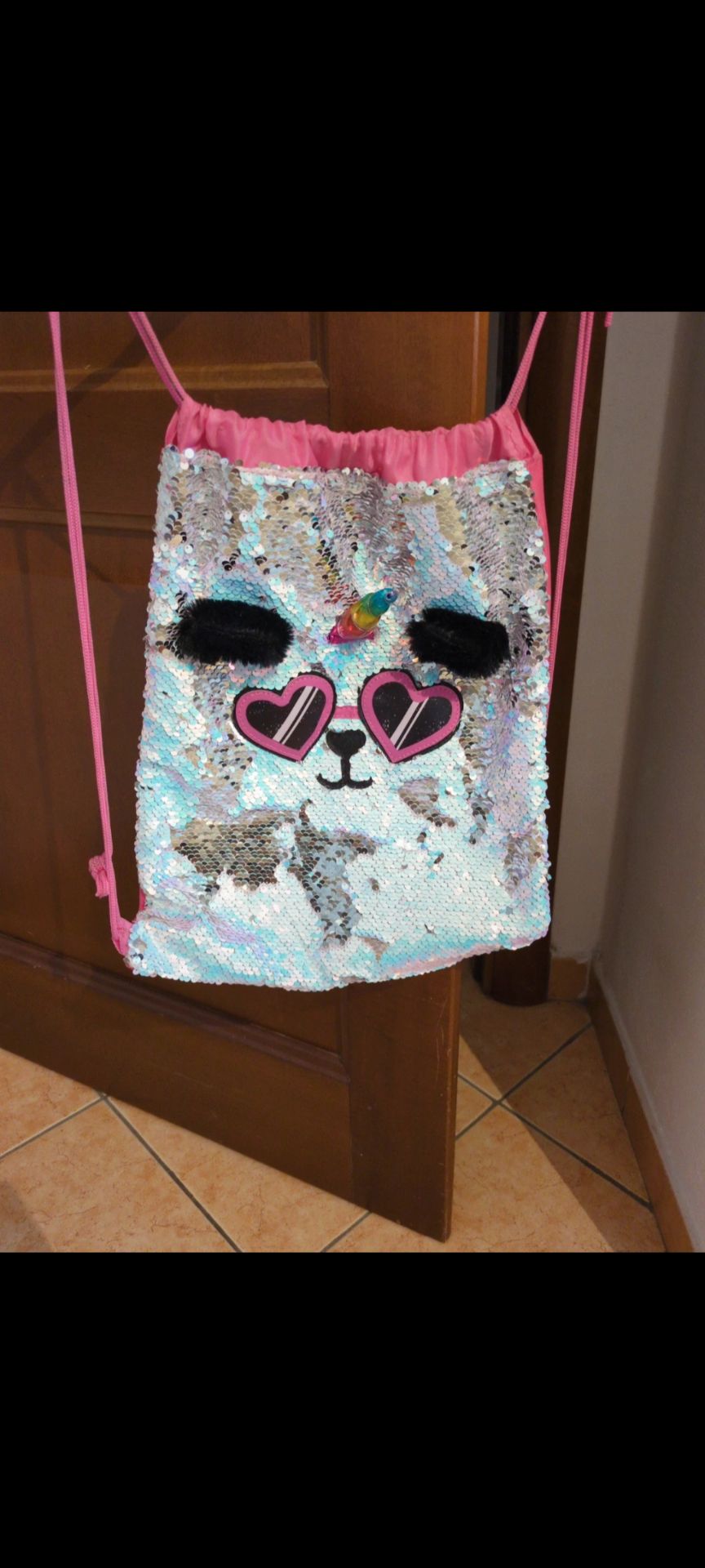 Zainetto girabrilla sintetico, alcune macchie di pennarello sul retro.
