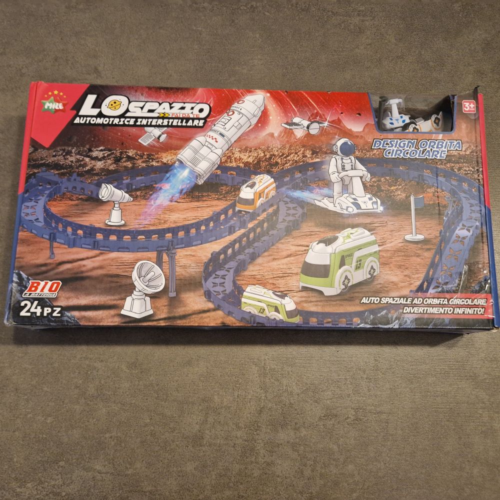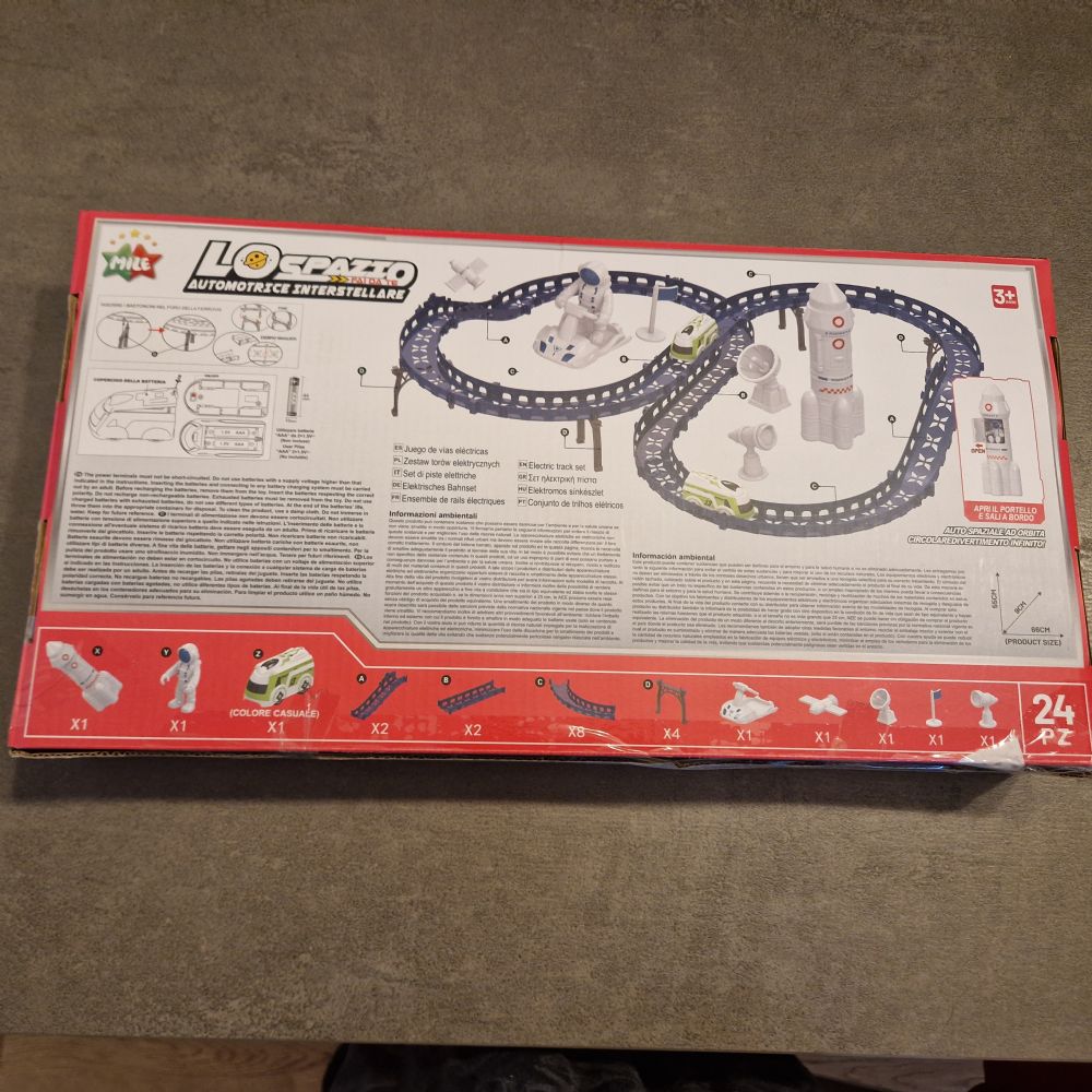 Descrizione:Posta auto spaziale da bambini 3+ usata una volta regalata ora per il compleanno del più grande composta da 24pz necessità di pile aaa