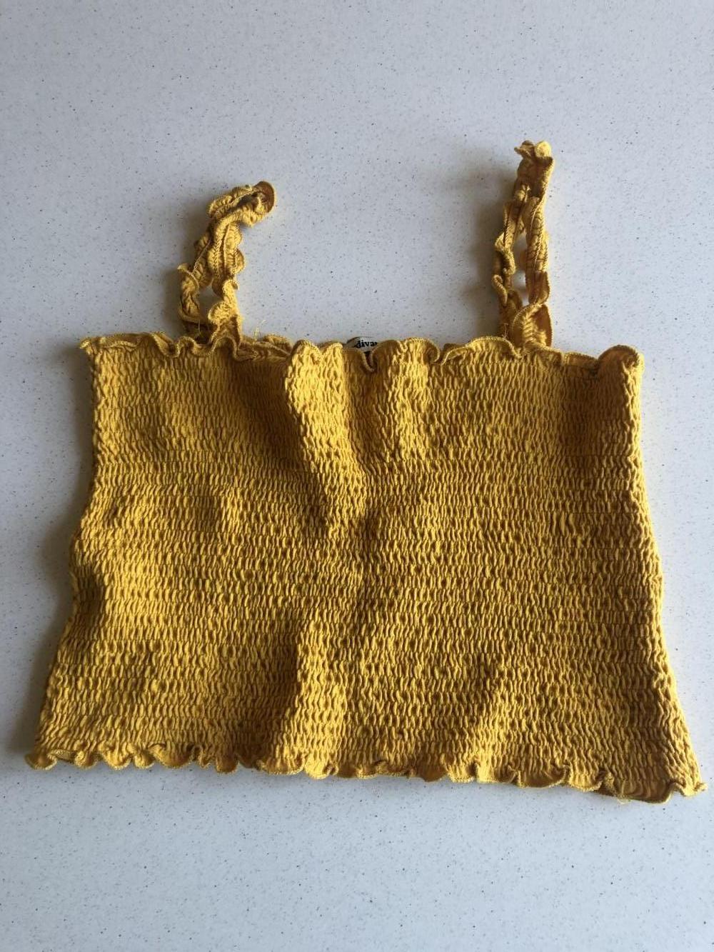 Descrizione:top goffrato elasticizzato colore senape marca Stradivarius veste una S italiana ma è super adattabile in quanto elasticizzato quindi ottima vestibilità - pubblico un bel pò di capi di mia figlia che sta facendo il cambio di stagione - spedisco ovunque