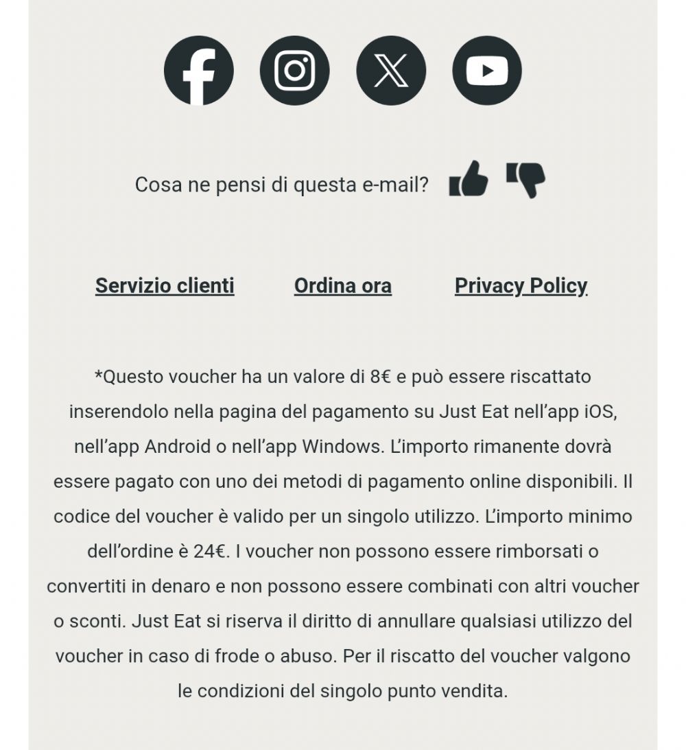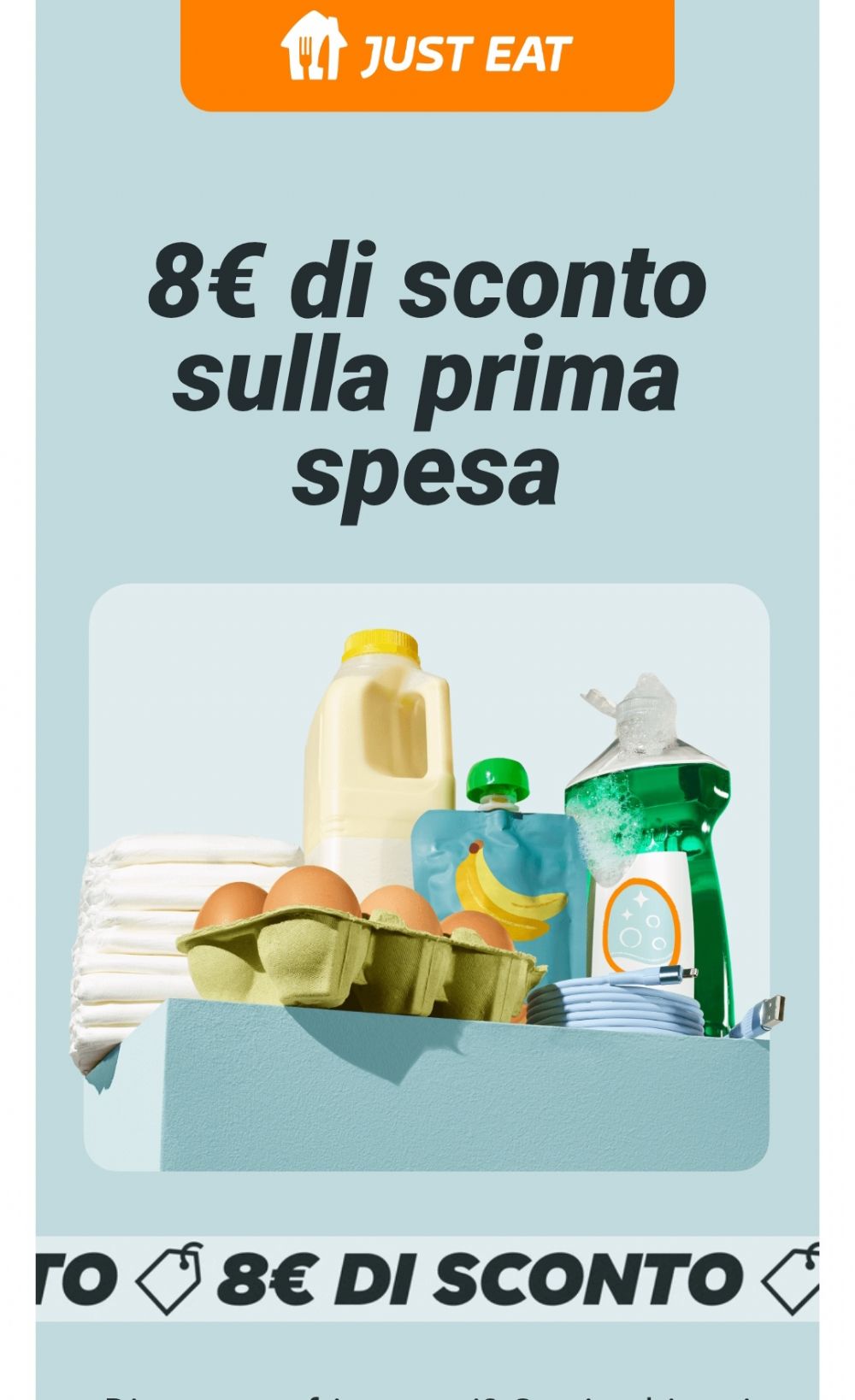 Buono sconto di 8euro per la piattaforma di Just eat, valido per la spesa spendibile per una spesa minima di 24euro. Valido fino a Marzo 2026