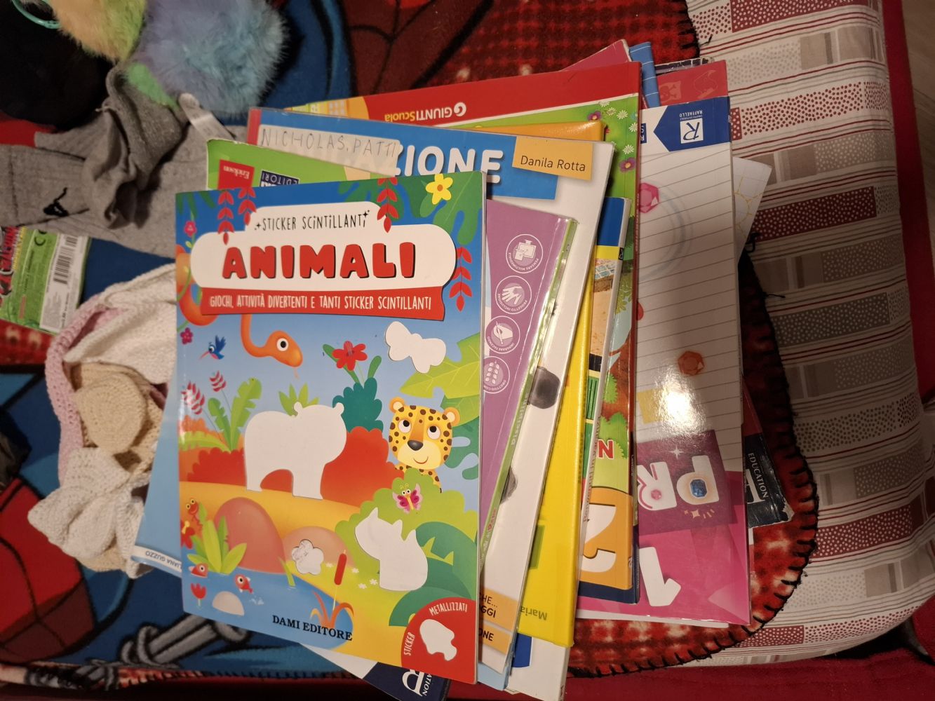 Descrizione:19 libri e quaderni per colorare imparare scrivere e disegnare ci sono indovinelli cruciverba ecc dai 65/6 anni fino ai 7.