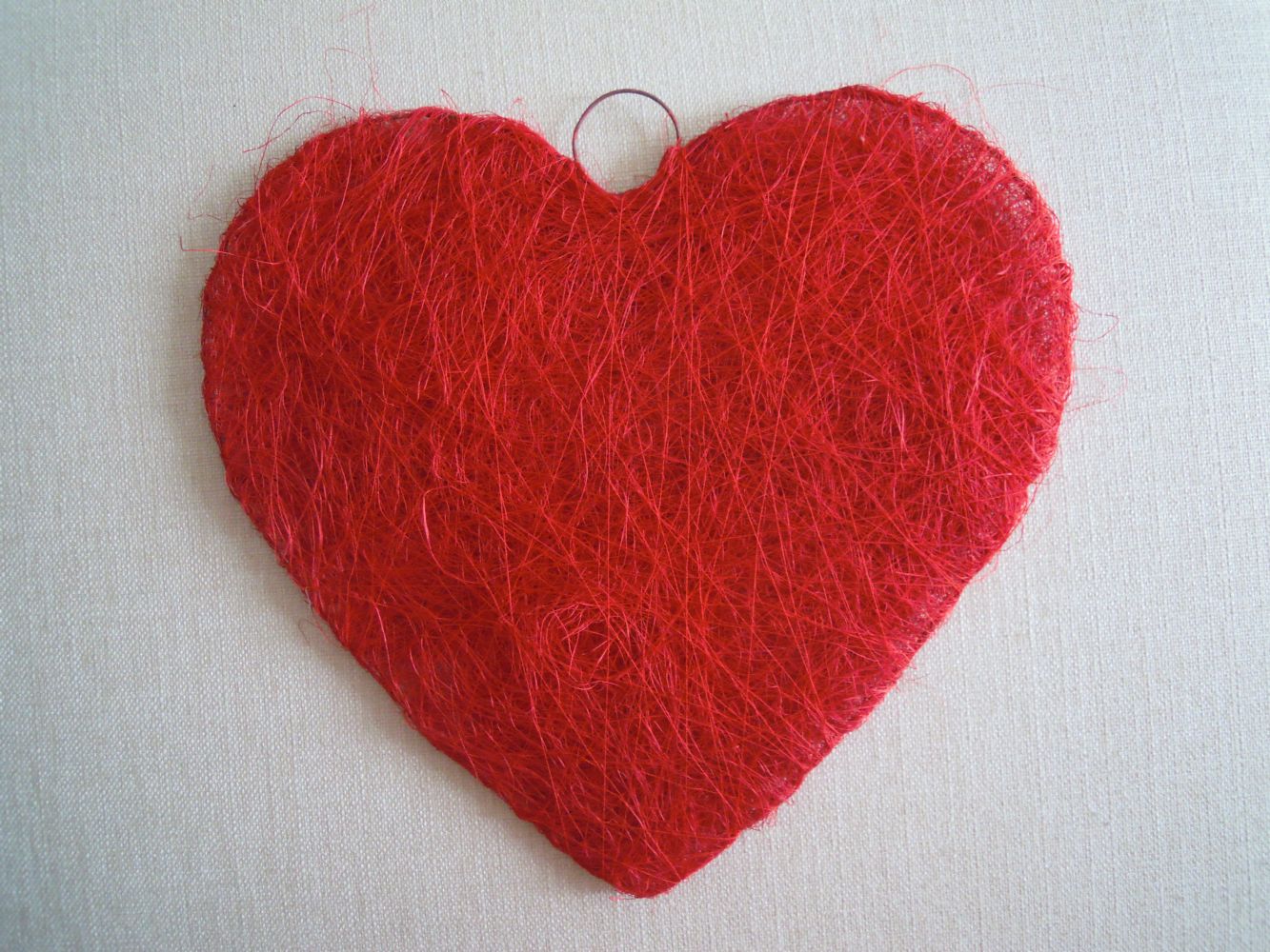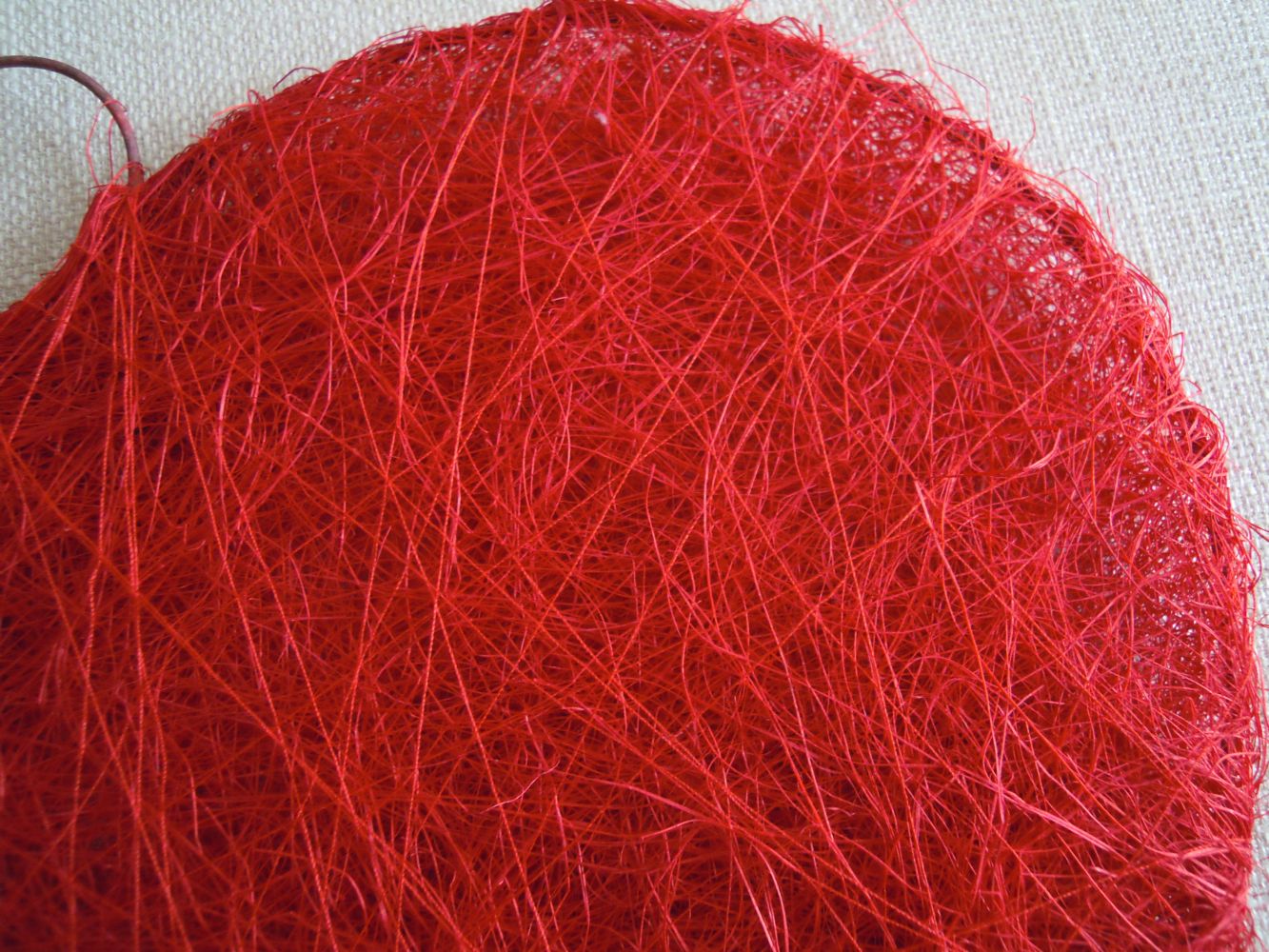 Erano in un negozio di una conoscente, ne ho due. Alto circa 25cm e lungo circa 25cm; è fatto con fili rossi intrecciati, metto foto particolare
