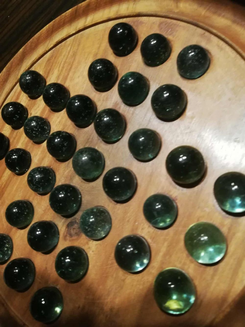 Dama cinese vintage con base in legno e sfere in vetro. Qualche segno del tempo soprattutto sulle biglie. La parte in legno è perfetta. Mano per dimensioni.