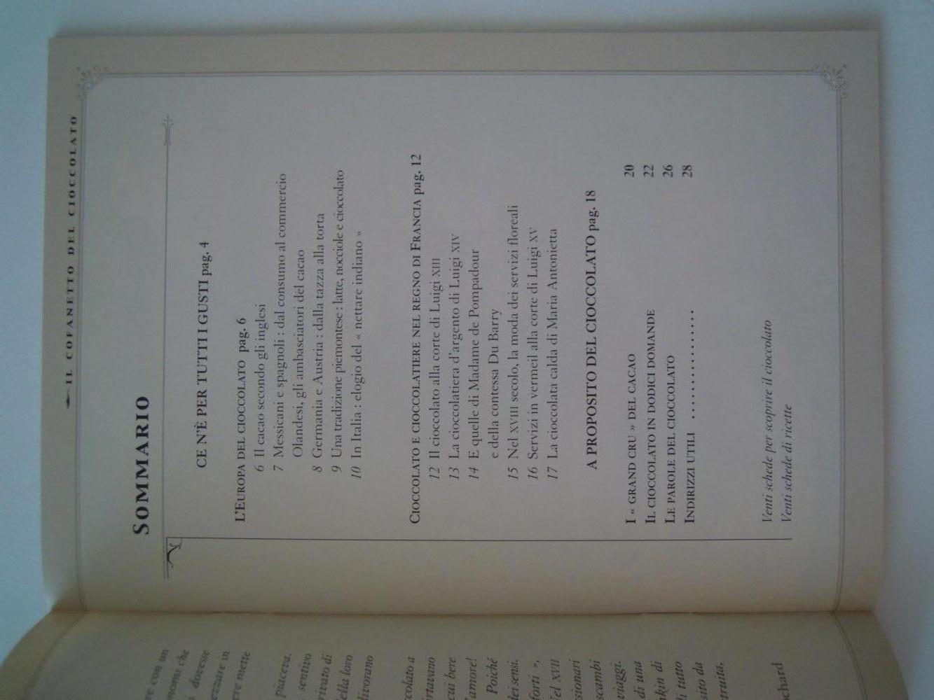 Descrizione:E' molto vecchio, parla del cioccolato, metto il sommario in foto; insieme ci sono ulteriori schede informative (anche con ricette).