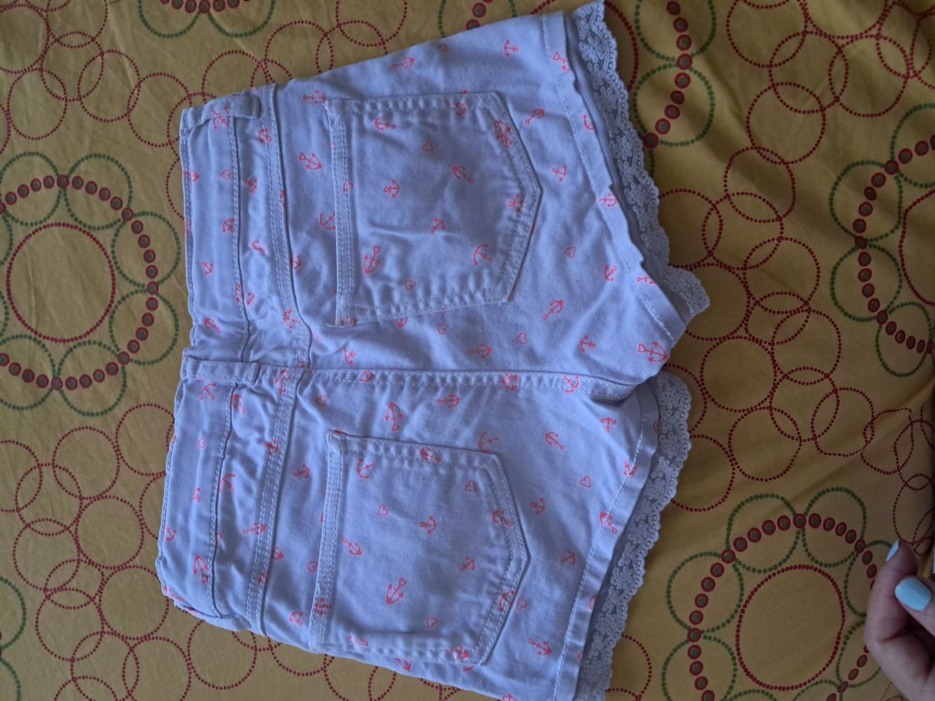 Descrizione:Pantaloncini H&m taglia 6-7 anni in cotone. Anche qui il bianco non è perfetto, ma leggermente ingrigito dai lavaggi (per intenderci, per me è un bianco ottimo, ma ci sono persone che vedono grigio ovunque, quindi astenetevi se non sopportate un leggero ingrigimento)