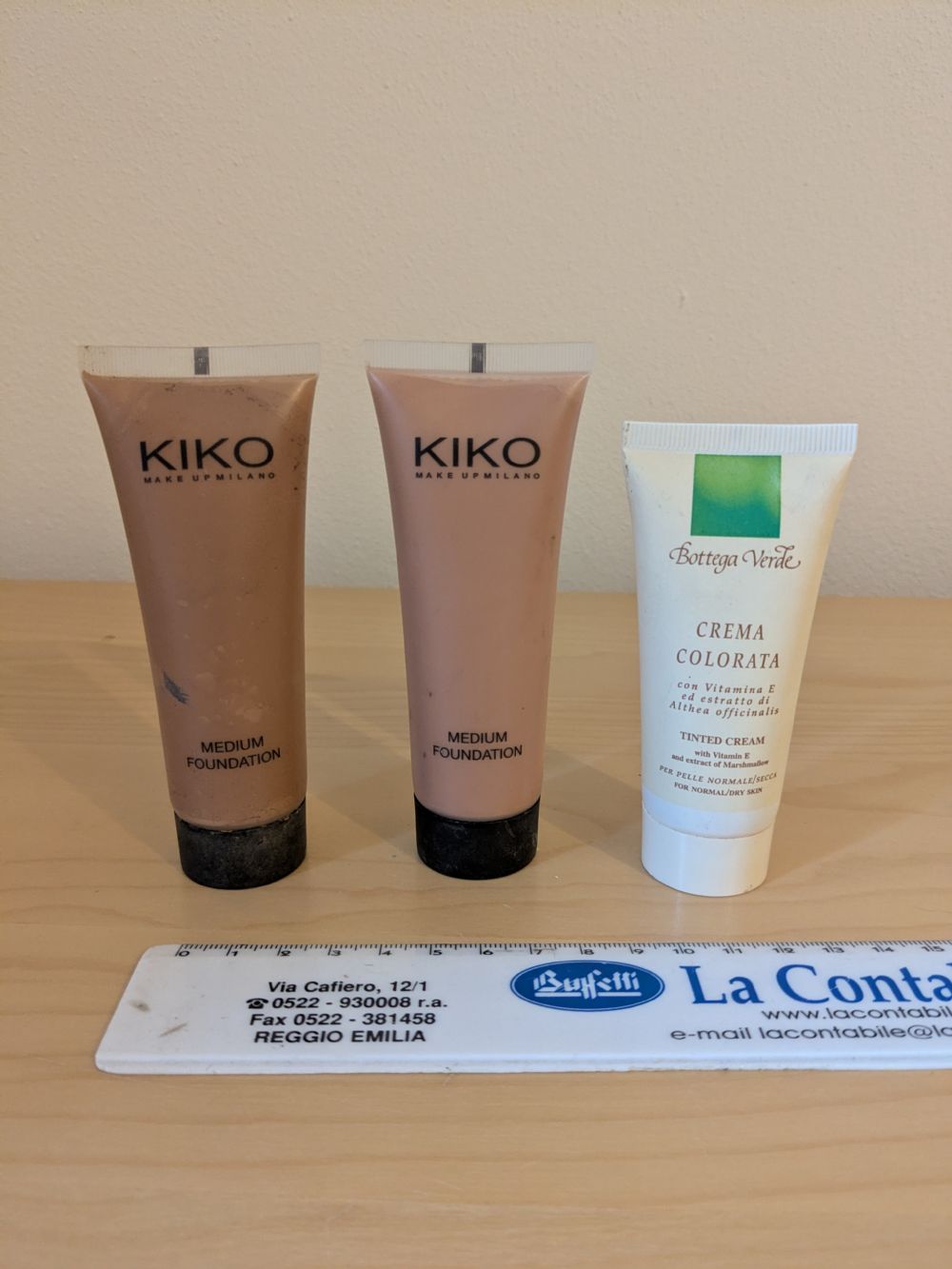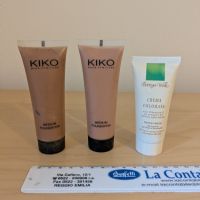 Descrizione:Regalo fondotinta perchè li ho ricevuti in regalo a mia volta ma non li uso e non so da quanto tempo sono aperti. Posso separar. Quello di sinistra è colore B5, quello centrale A3, il terzo è una crema idratante colorata.
