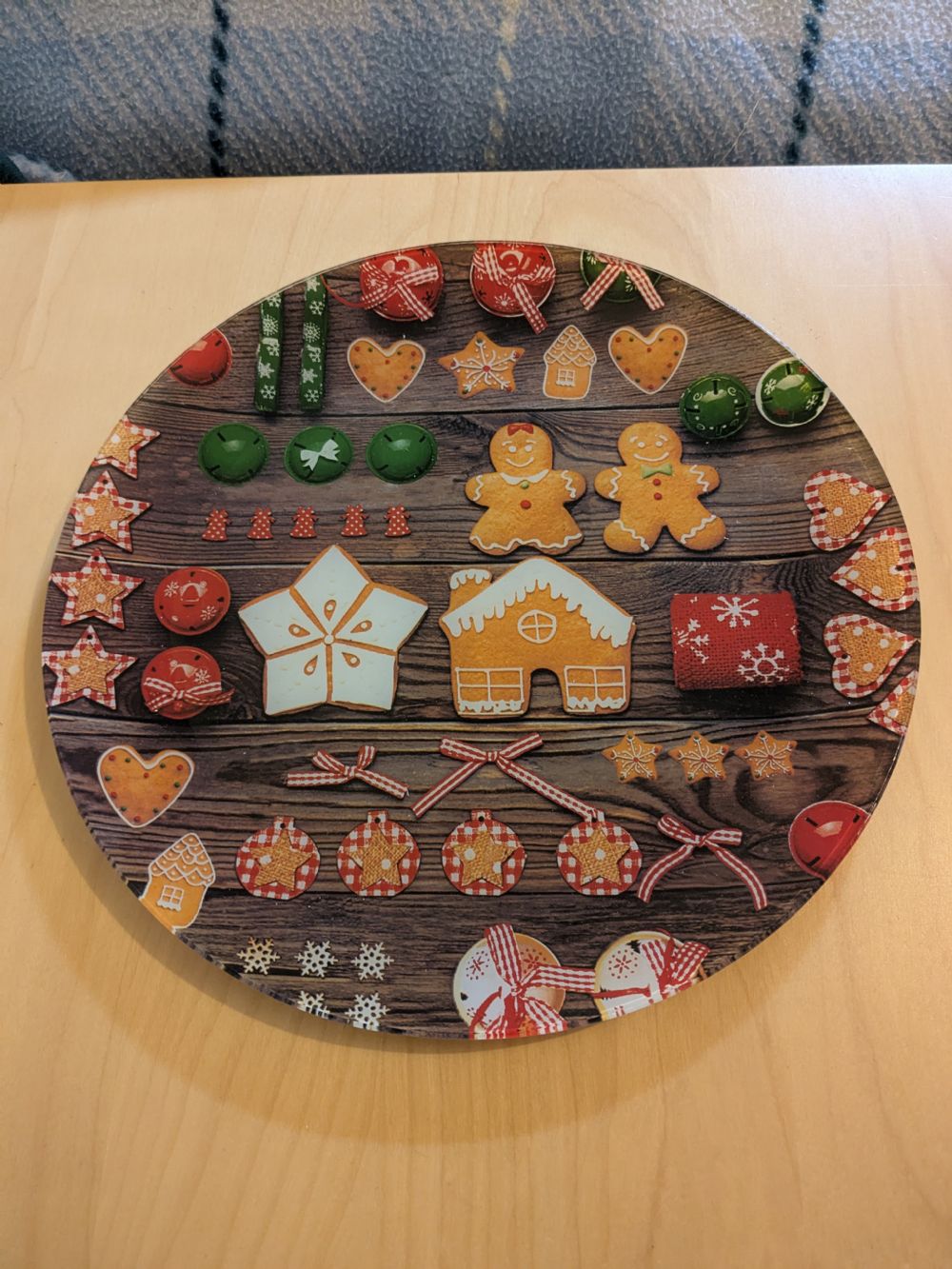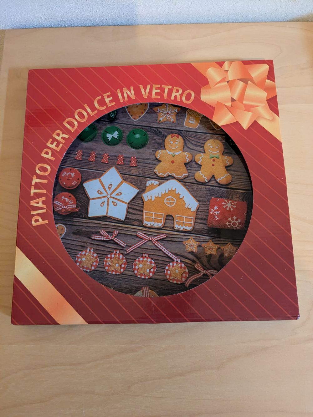 Piatto con decorazione natalizia in vetro, nuovo mai usato con scatola. Diametro cm 28