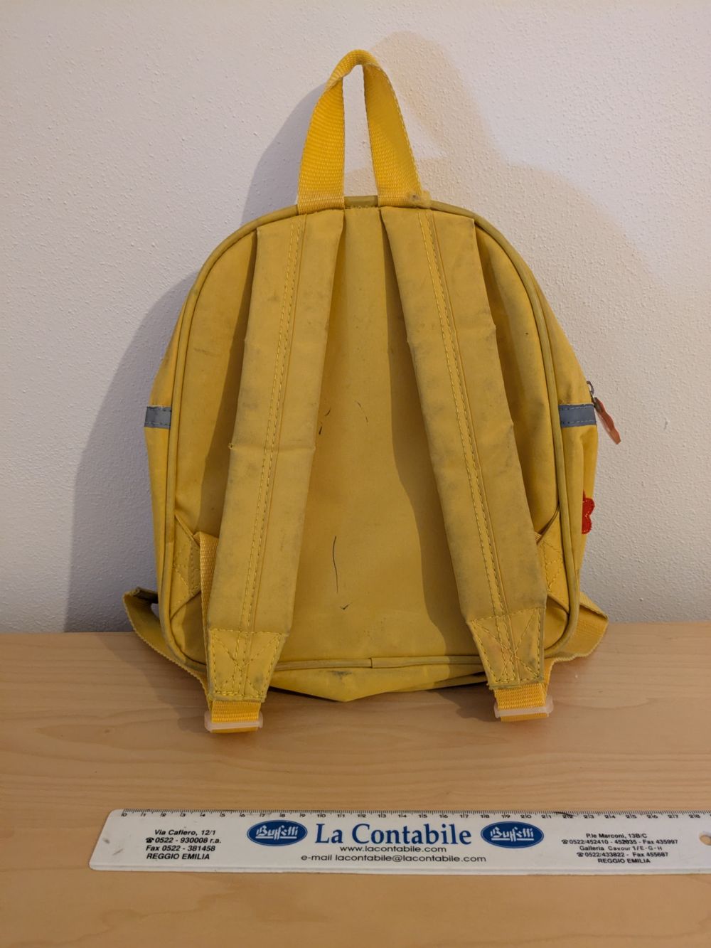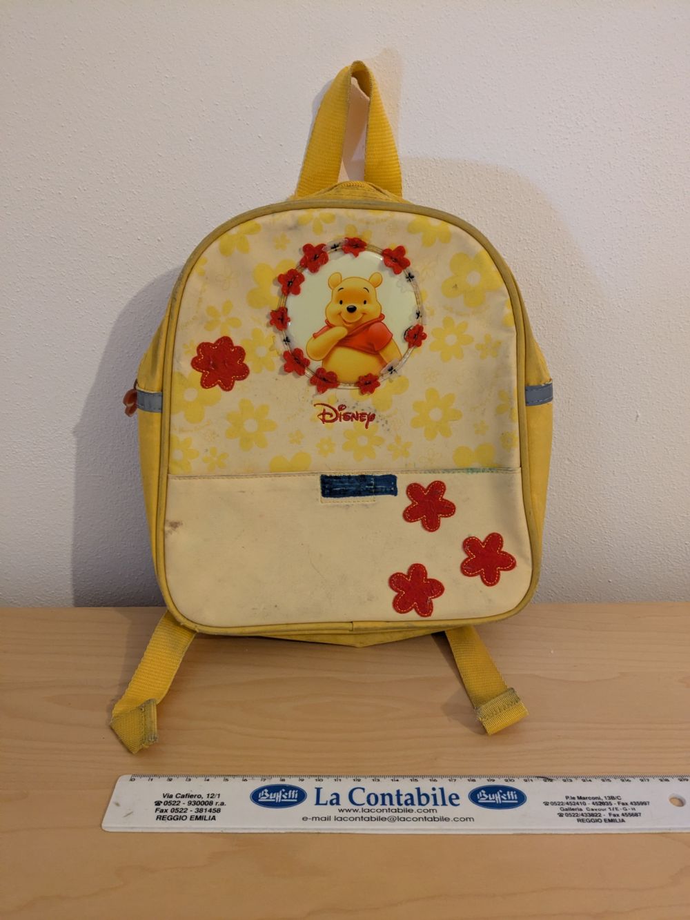 Descrizione:Zainetto Winnie Pooh, molto macchiato (ho provato a lavarlo ma le macchie non vengono via) per il resto è ancora molto sfruttabile, zip in ottimo stato