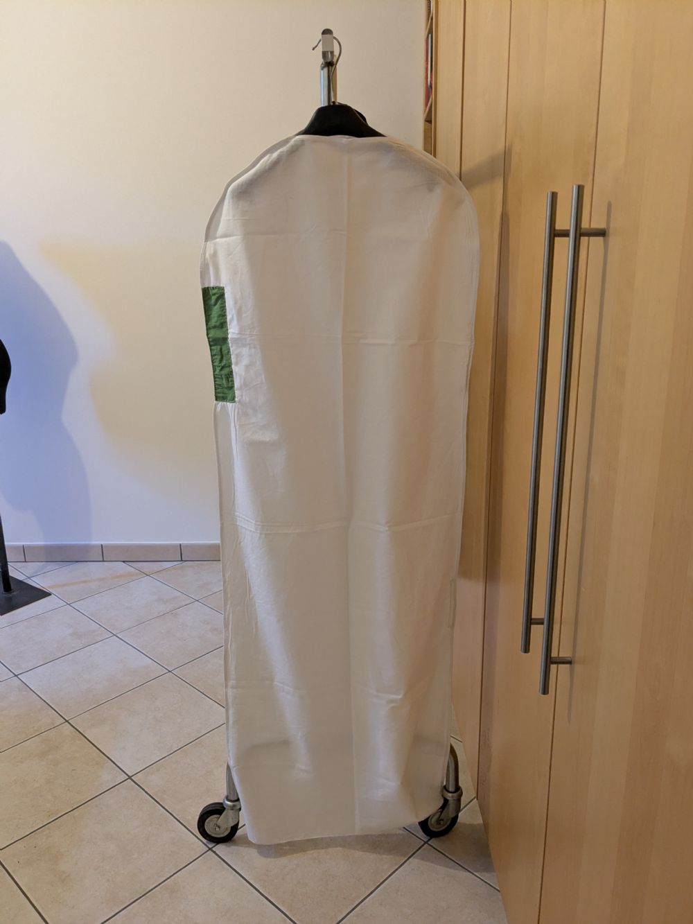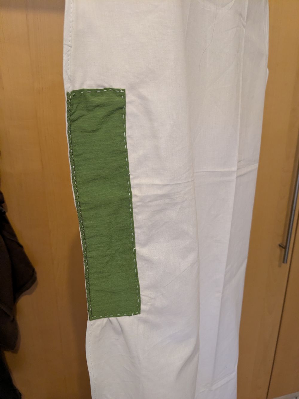 Descrizione:Sacca in tela leggera di cotone con patch verde cucita a mano.