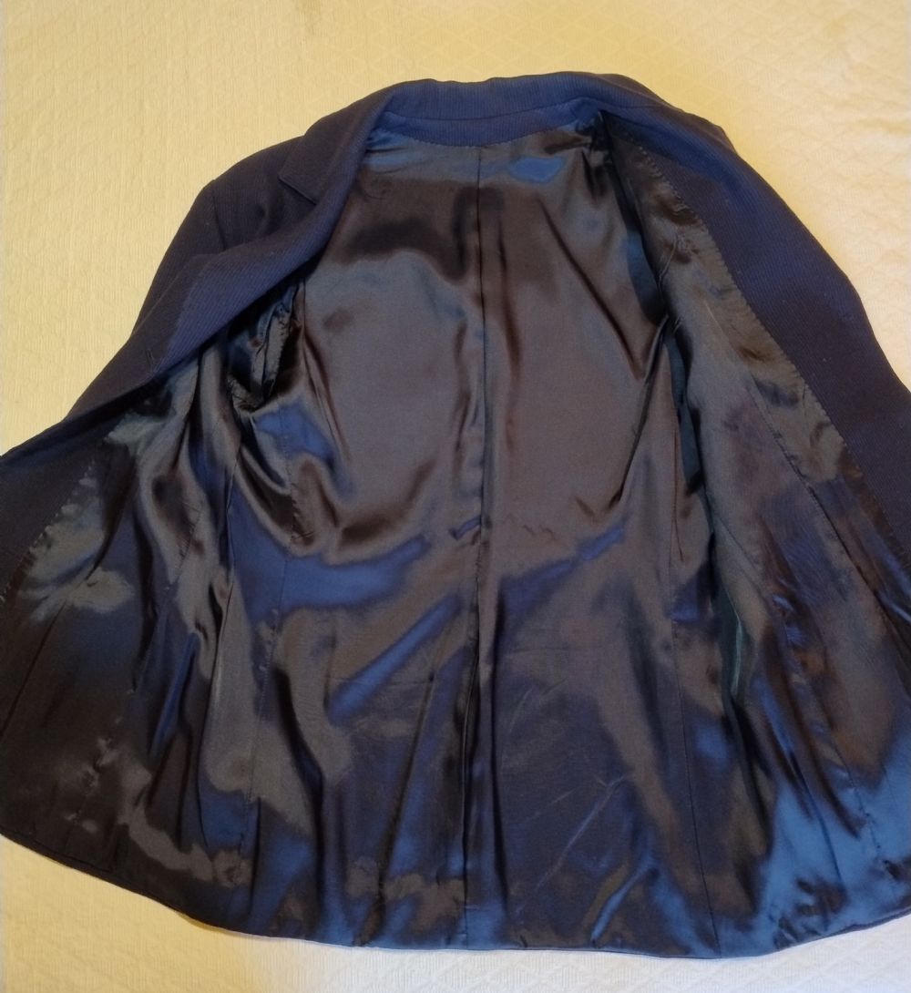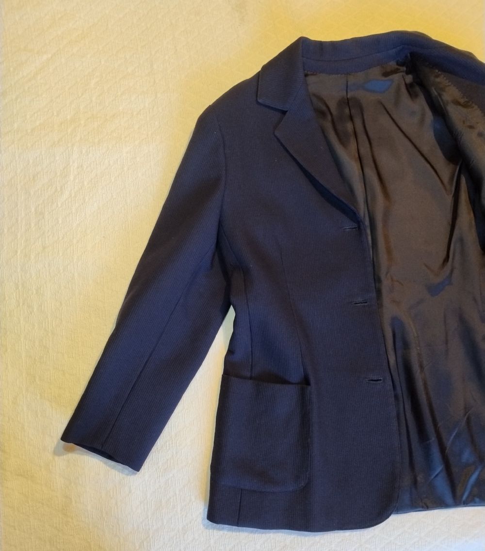 Descrizione:Blazer blu notte, tessuto cotone pesante a costine, interamente foderato, sartoriale.