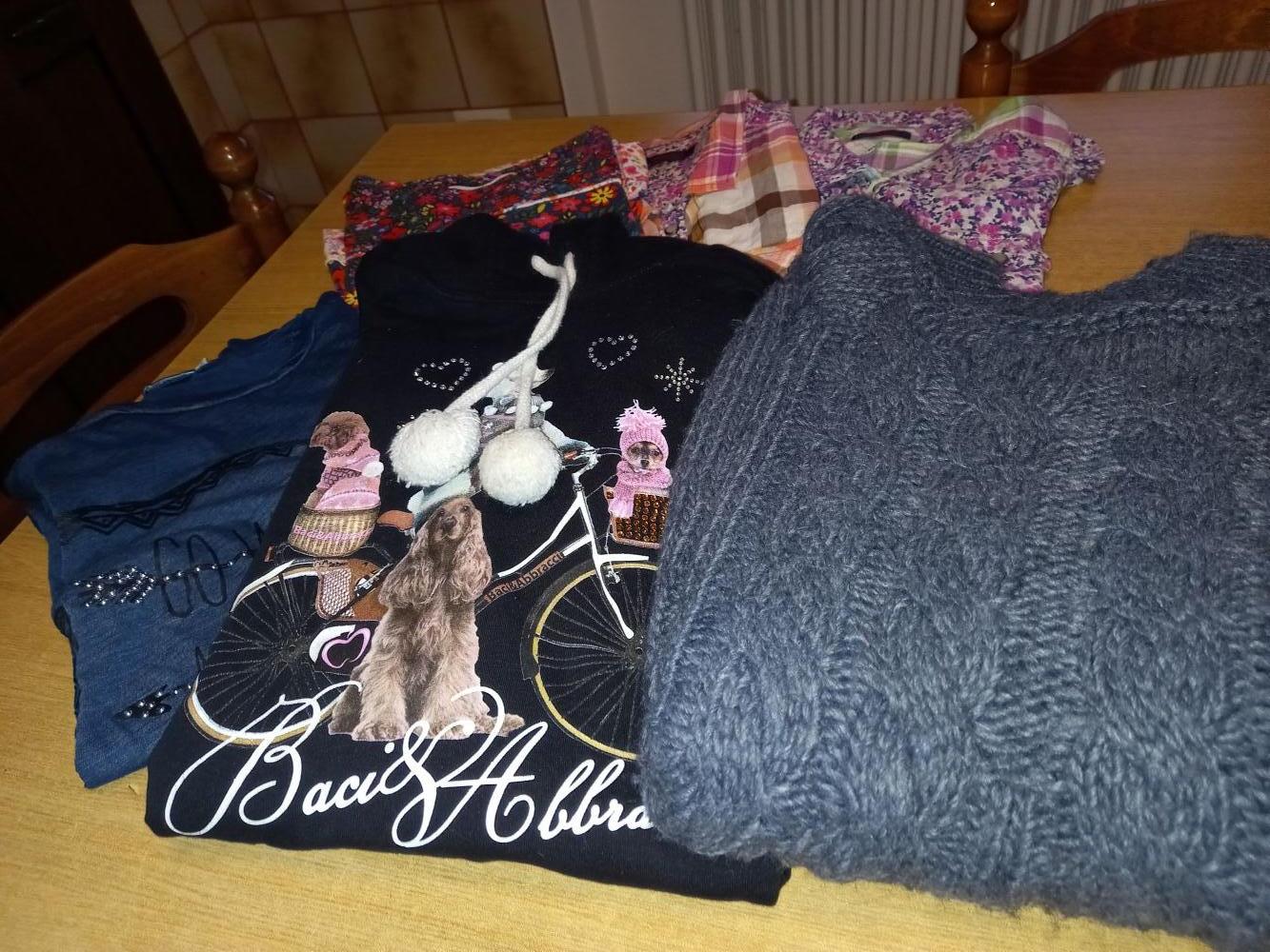 Descrizione:Set composto da 3 capi estivi, 1 maglia cotone a maniche lunghe, 2 capi invernali ( lupetto e felpa lunghi da indossare con leggins). Capi della Sisley, Baci e Abbracci, Desigual, Catilina e 1 Original Marines. Capi in cotone e misto cotone,misto lana