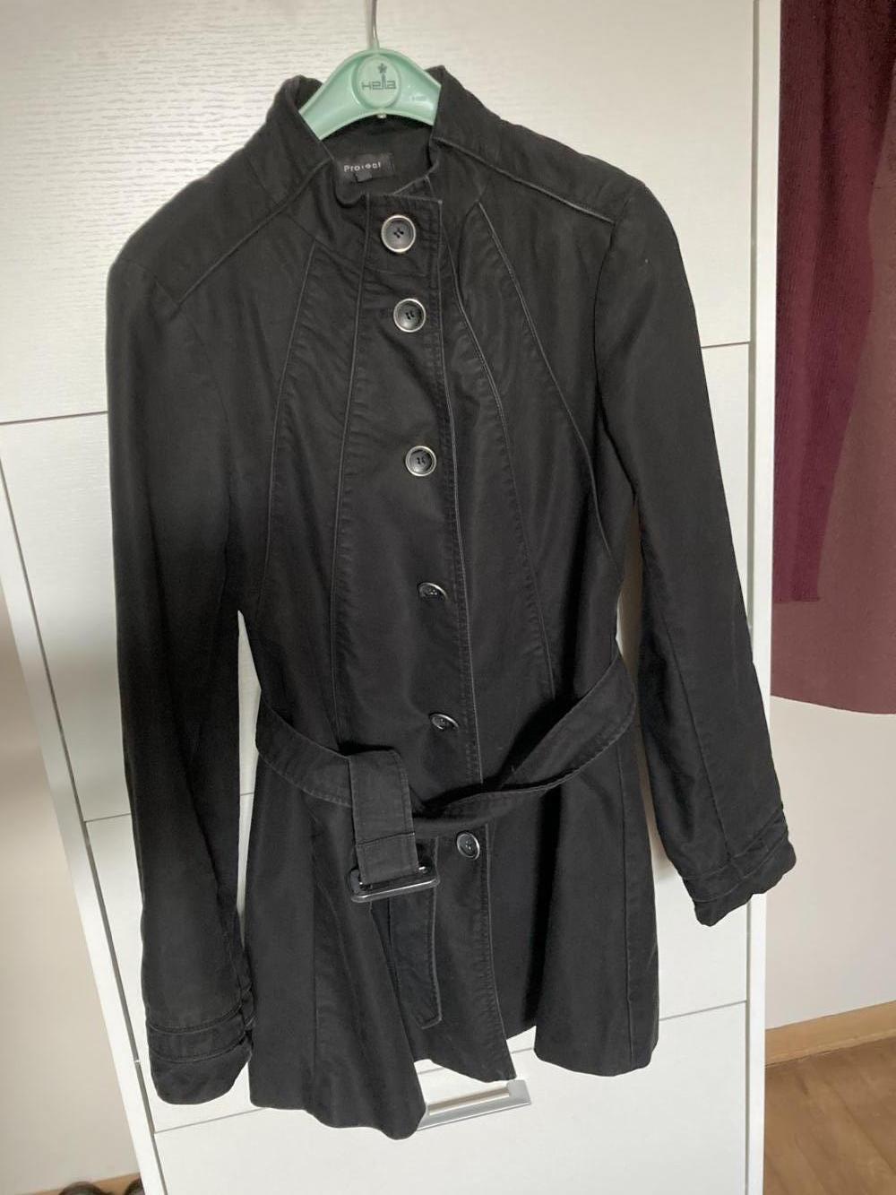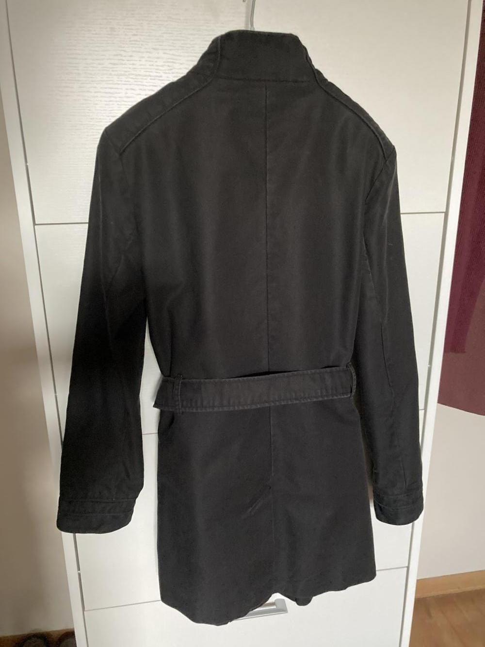 Descrizione:Soprabito nero in cotone pesante, comprato da OVS anni fa. Lavato più volte, infatti il colore è sbiadito: ha un’aria vissuta. L’etichetta non è più leggibile, ma è cotone. Foderato. Due ampie tasche davanti. Chiusura con bottoni e cintura in vita dello stesso tessuto. Lunghezza sotto i glutei. Lavorazione ve slancia la figura. Taglia M, veste 44.
