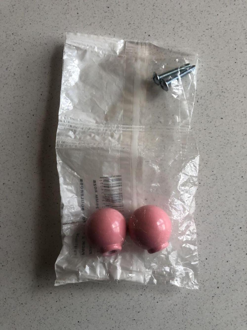 confezione contenente 2 pomelli resina rosa da usare al posto delle maniglie - nuovi - dimensioni in foto - a voi!