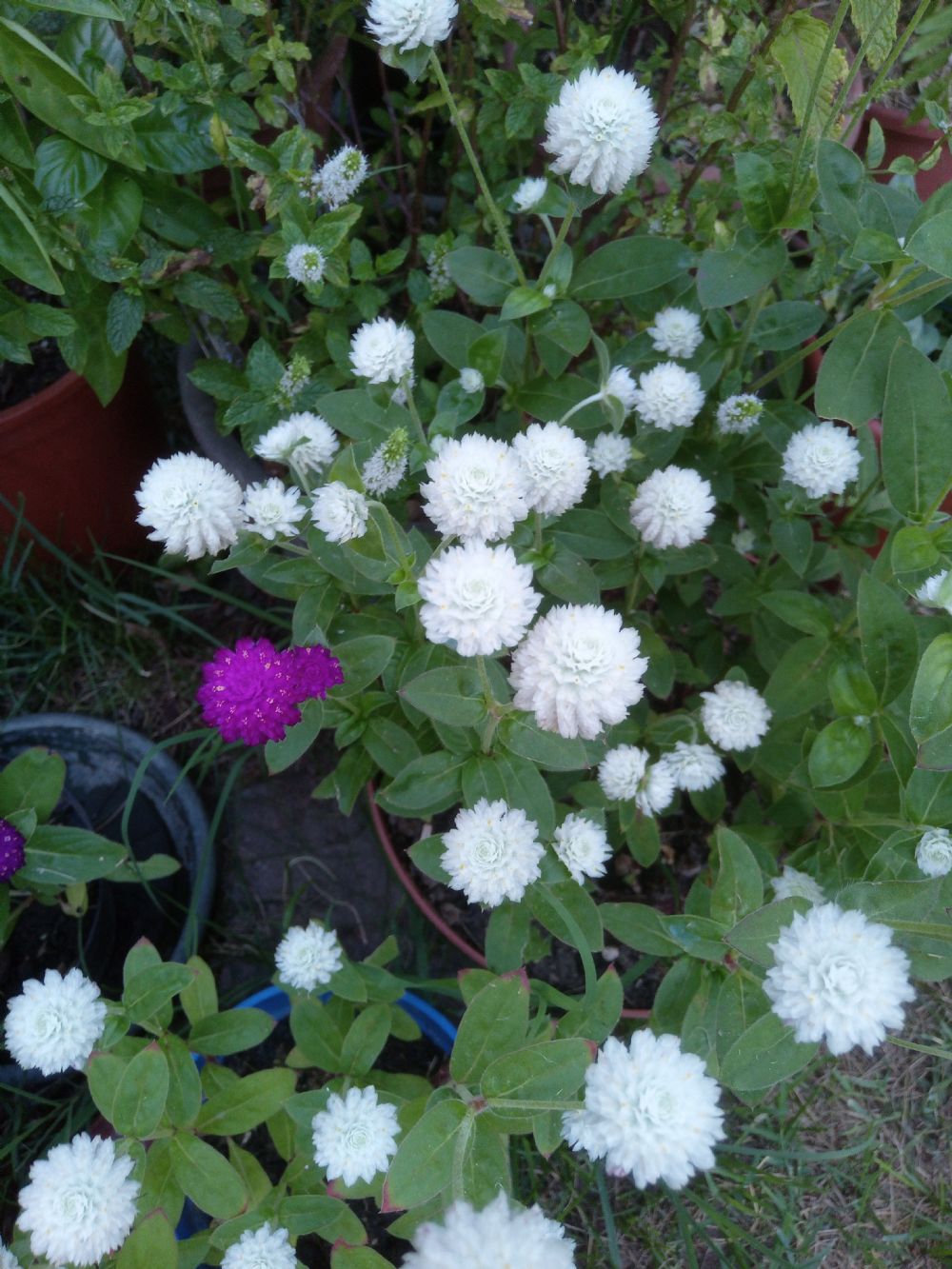 Decorativo il fiore globoso , tipo pallina , di circa 2 cm., altezza della pianta dai 20 ai 30 cm circa.