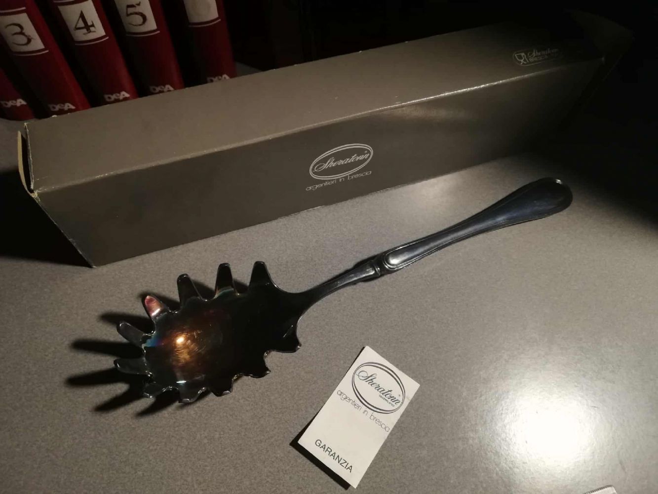 Servispaghetti vintage, marca Sheraton placcato in argento. Si è ossidato col tempo ma si può pulire. Mai usato.