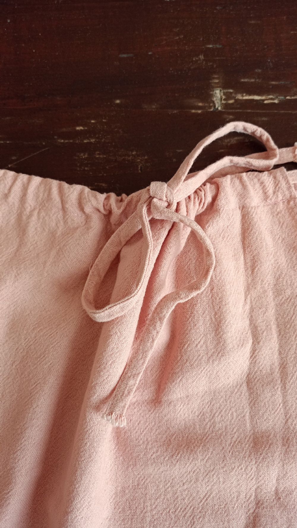 Non ha etichetta. Sembra cotone o lino. Veste piccolo