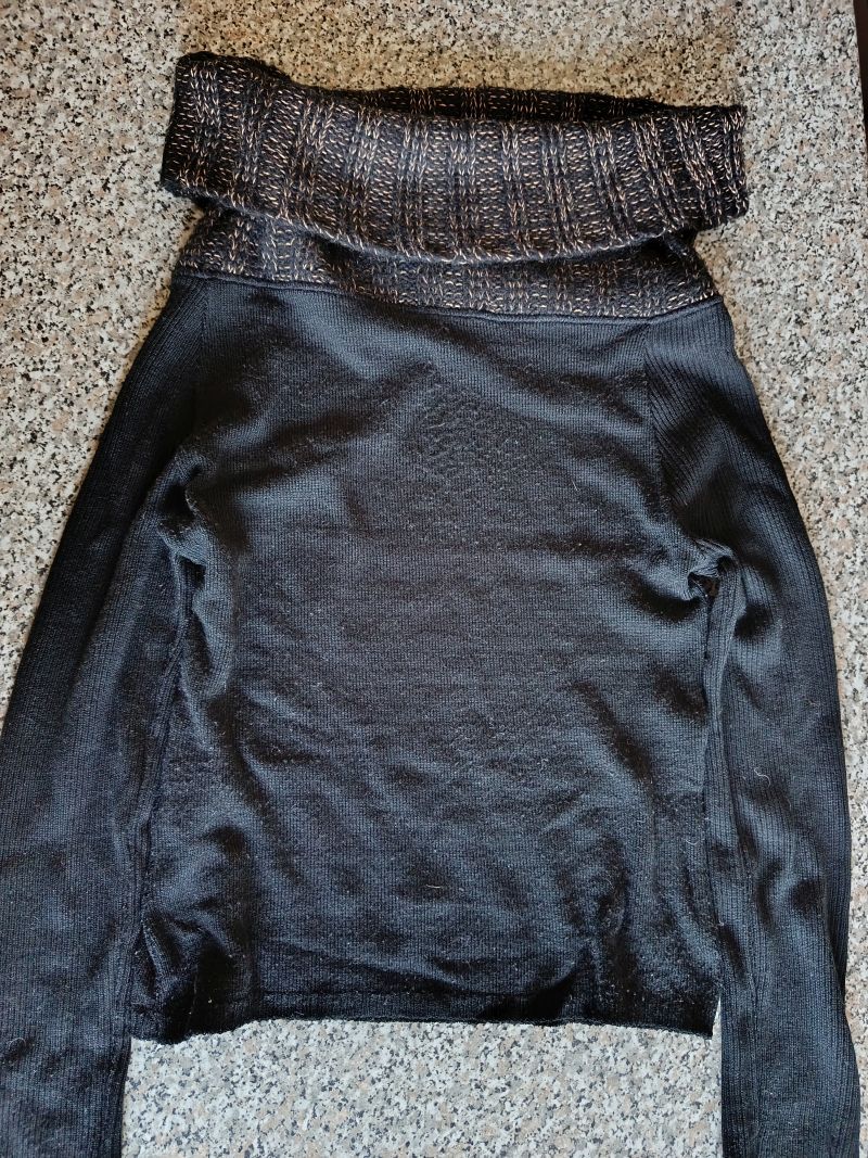 Maglione dolcevita scuro. 50% lana merinos 50% acrilico. Misure approssimate: Spalla-spalla: circa 40 cm