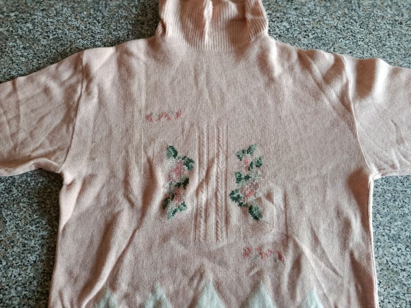 Maglione chiaro. 80% lana merinos 20% poliammide Misura approssimata spalla-spalla: circa 53 cm